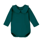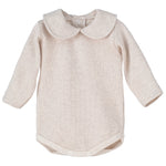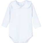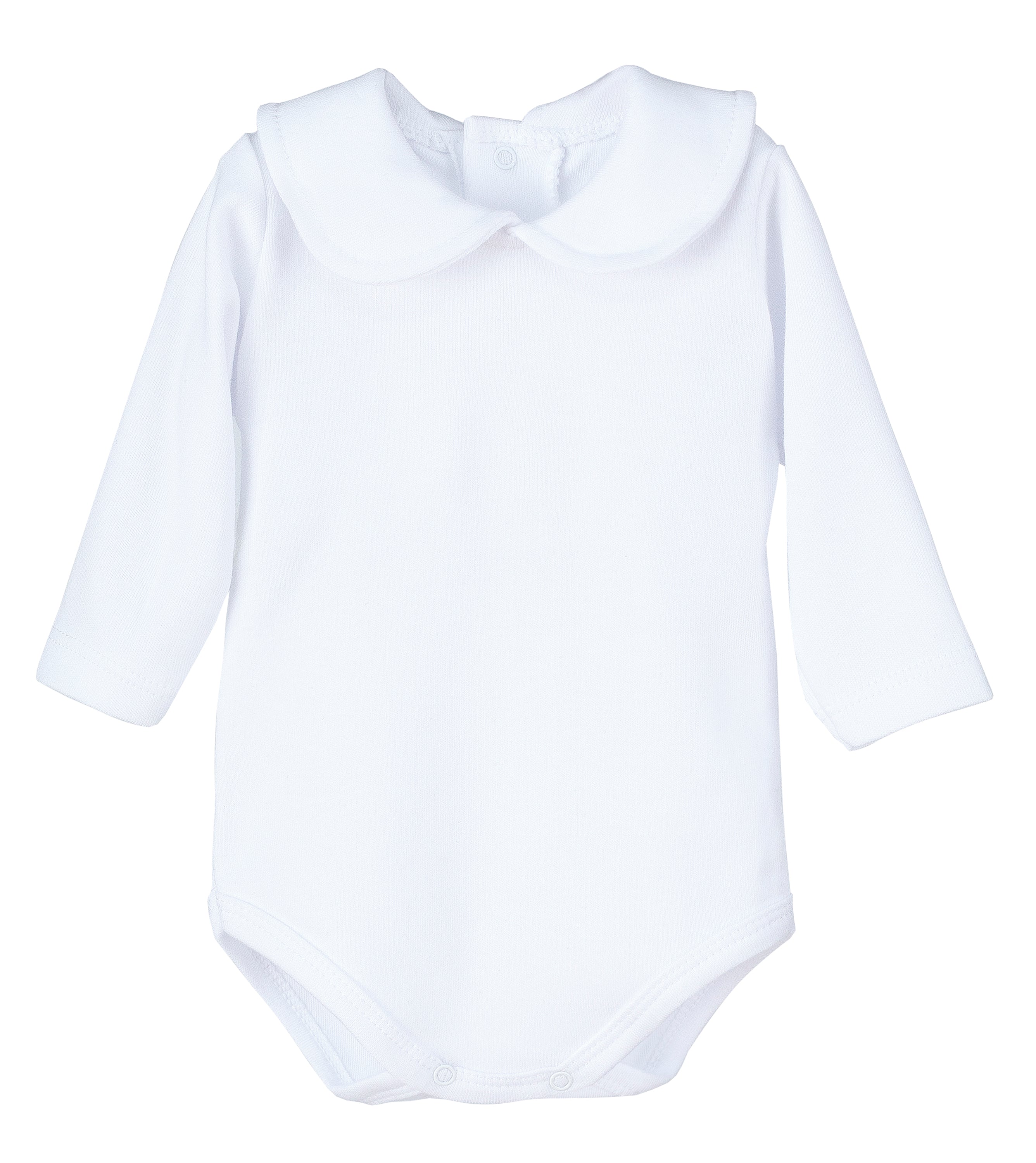 Body in caldo cotone a maniche lunghe, con colletto rotondo e chiusura con  bottoni a pressione sulla schiena e al cavallo.