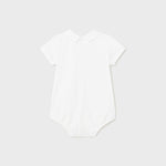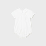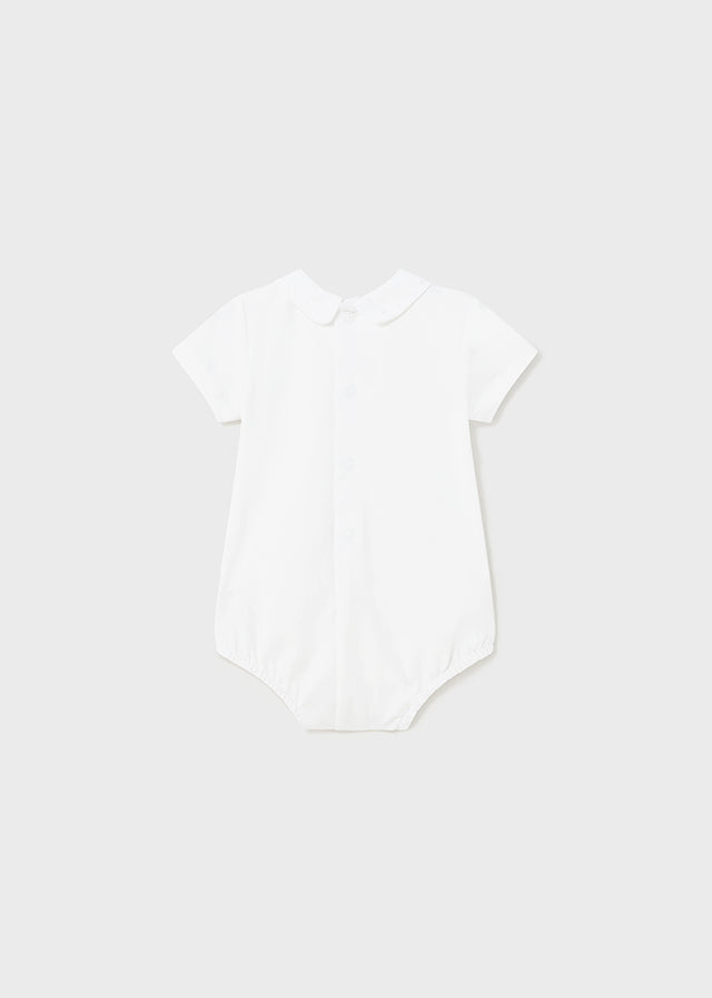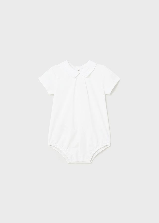 Body manica corta per neonato. Colletto modello camicia. Chiusura con bottoni a pressione nella parte posteriore che facilitano la vestibilità del capo. Chiusura con bottoni a pressione nell'interno cosce per agevolare la vestibilità.