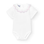 Il body mezza manica in cotone BABIDU è perfetto per completare l'outfit della tua neonata. Realizzato in morbido cotone, presenta un grazioso collo volant ricamato che aggiunge un tocco di eleganza al look. Comodo e pratico per ogni occasione, questo body è un must-have per ogni genitore esperto.