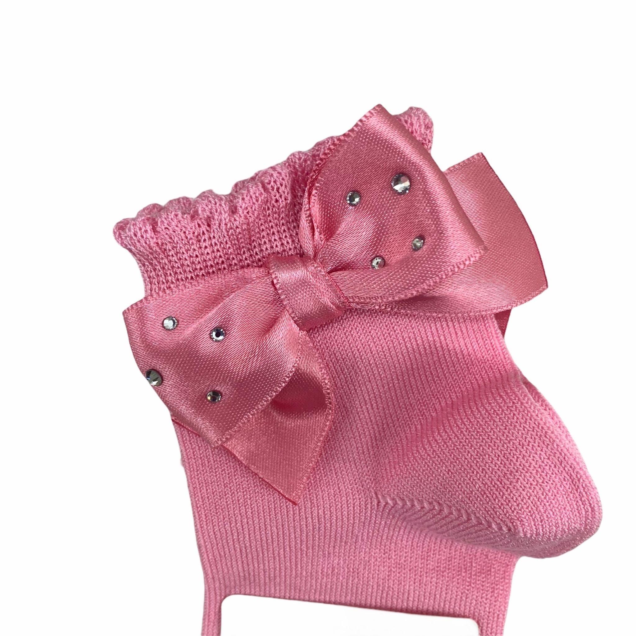 Calzini corti in filo di scozia con fiocchetto in raso e strass.