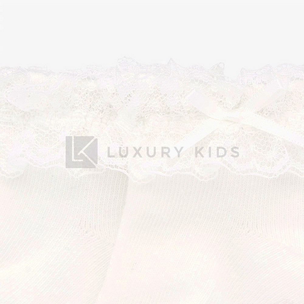 Calze eleganti per neonata. Morbido tessuto di cotone elasticizzato. Elementi decorativi: fiocco. Design liscio.