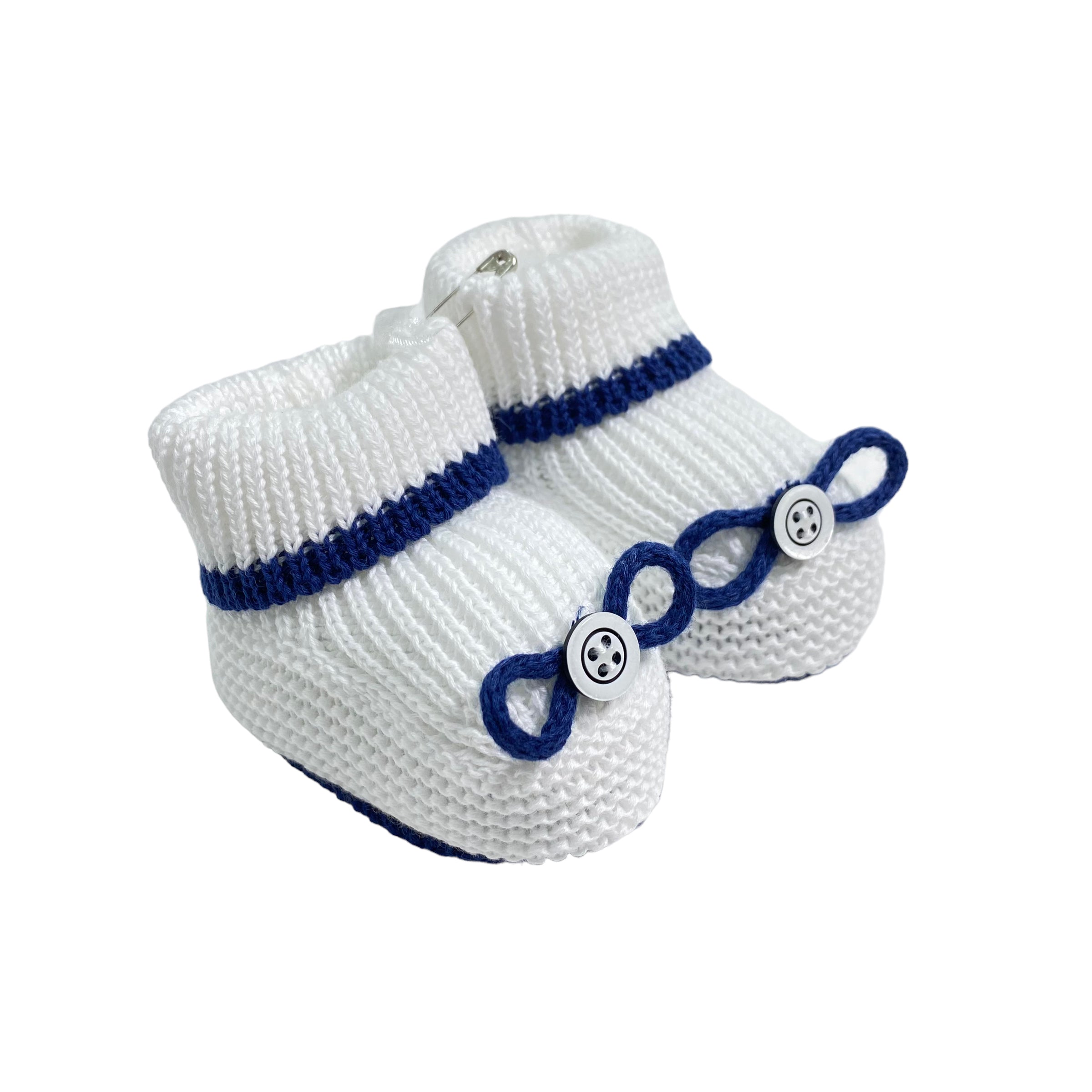 Calzino scarpetta in filo di cotone, bianco con base blu.