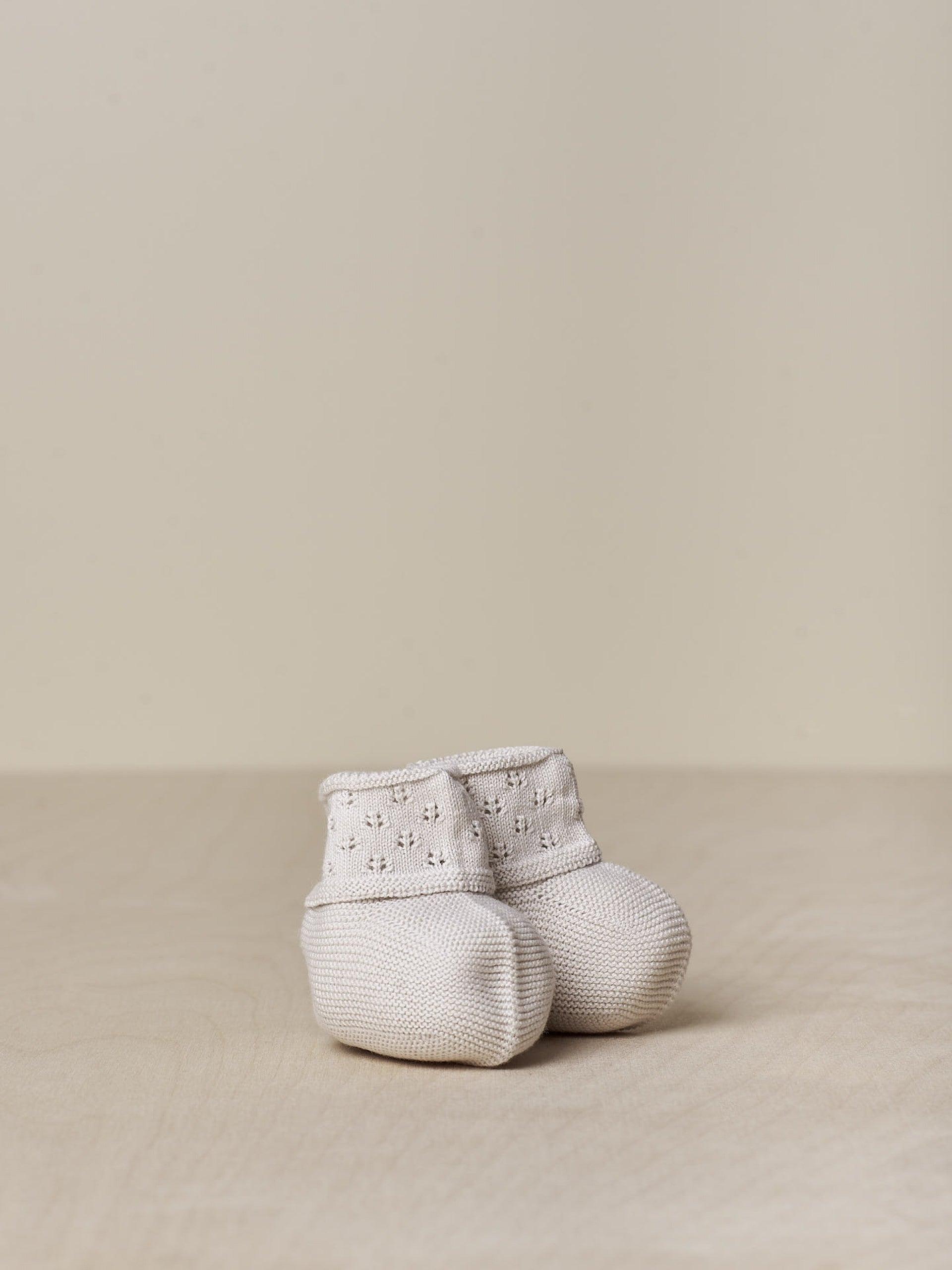Scarpette in filo neonato WEDOBLE V2405345A, perfette per i piccoli piedi delicati. Risvoltino rifinito con lavorazioni traforate per un look sofisticato. Un'alternativa adorabile alle scarpette in tessuto per i momenti speciali.