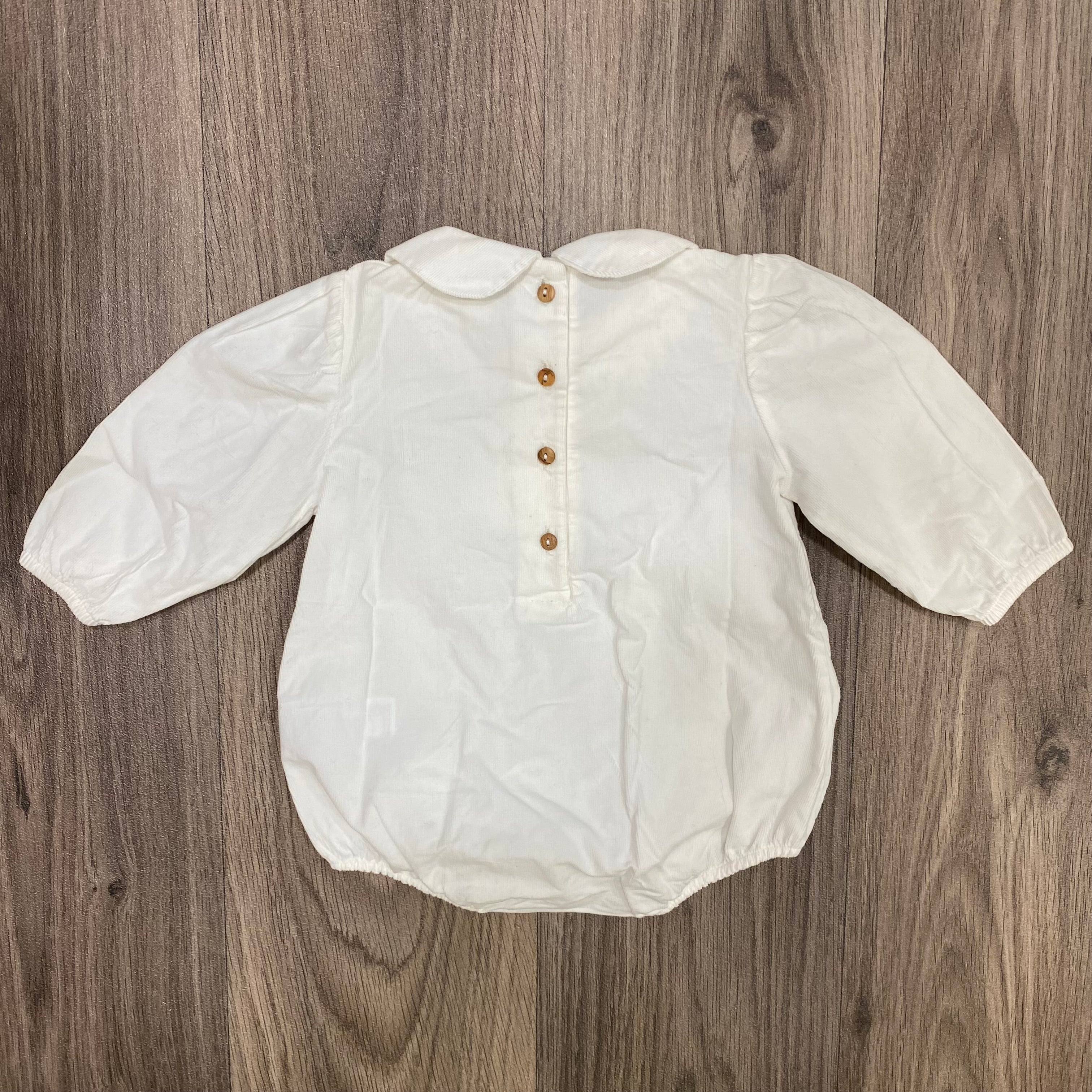 Camicia a body in vellutino millerighe in tinta unita panna.