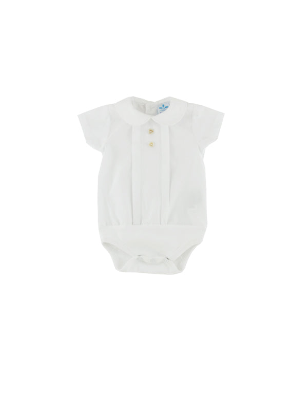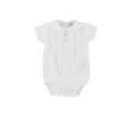 Elegante camicia a mezza manica per neonati in cotone batista, con collo tondo e bottoncini sul davanti. Perfetta per un look raffinato e comodo per il tuo piccolo.