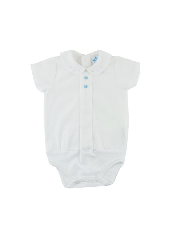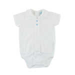 Questa camicia mezza manica in lino è perfetta per il tuo neonato. Il collo tondo con impunture celesti e i bottoncini sul davanti la rendono elegante e raffinata. Confortevole e fresca, è ideale per le giornate estive. Regala al tuo bambino stile e comodità con questa camicia.
