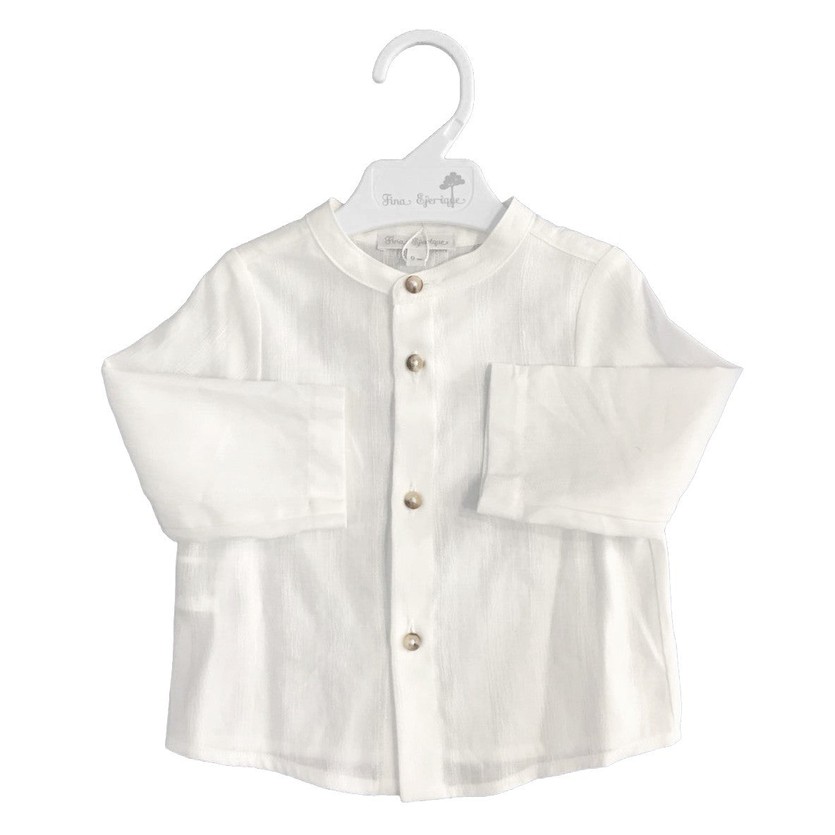 Camicia modello coreano in lino e cotone lavorata ,chiusura con bottoni