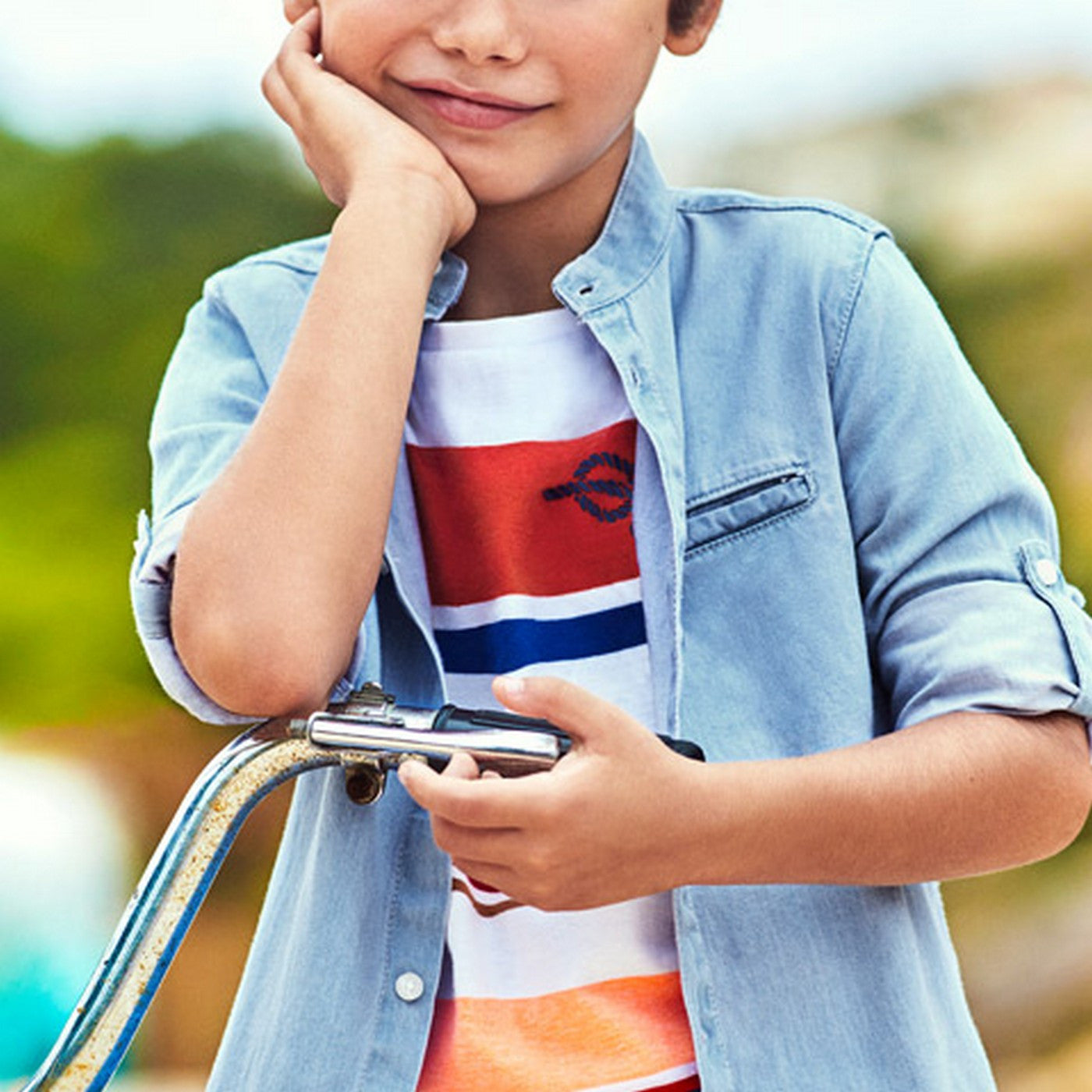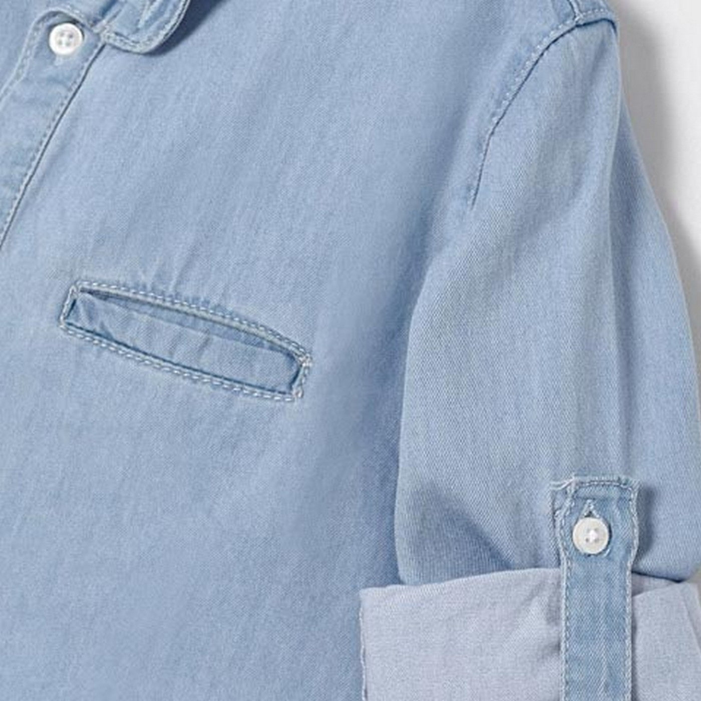 Camicia manica lunga risvoltabile con collo coreano.