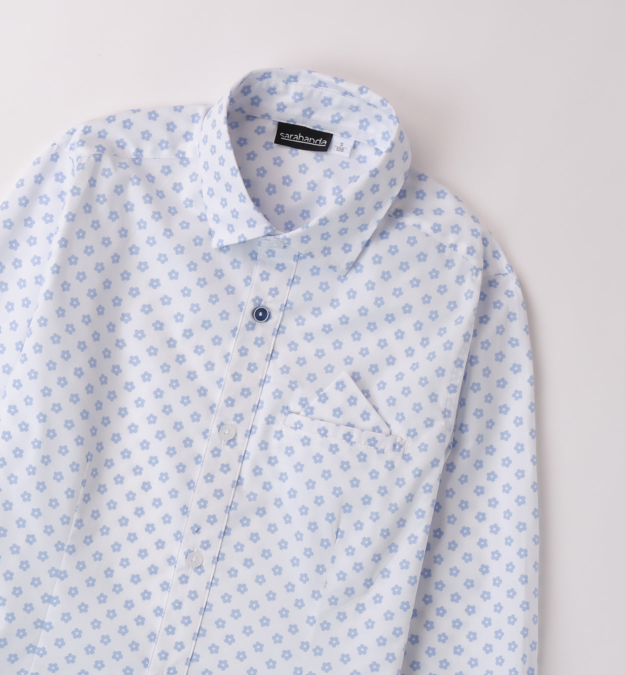 Questa camicia per bambini SARABANDA è realizzata in morbido cotone elasticizzato per garantire comfort e vestibilità. Con fantasia floreale e pochette inclusa, può essere indossata sia in occasioni eleganti che casuali, sempre alla moda. Maniche lunghe per proteggere dal freddo.