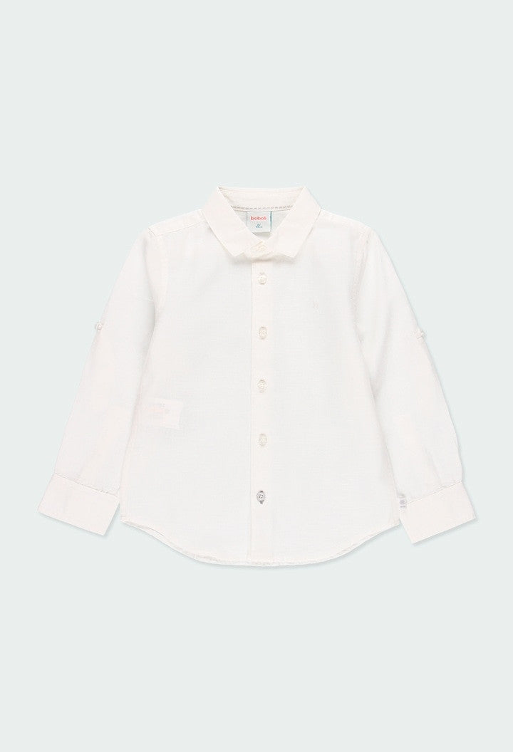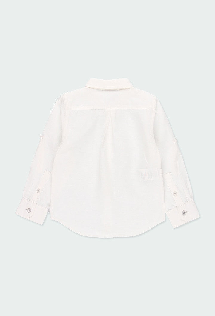 La manica può diventare mezza manica con dei risvoltini. Colletto a camicia e apertura sul davanti con dei bottoncini bianchi in madre-perla.