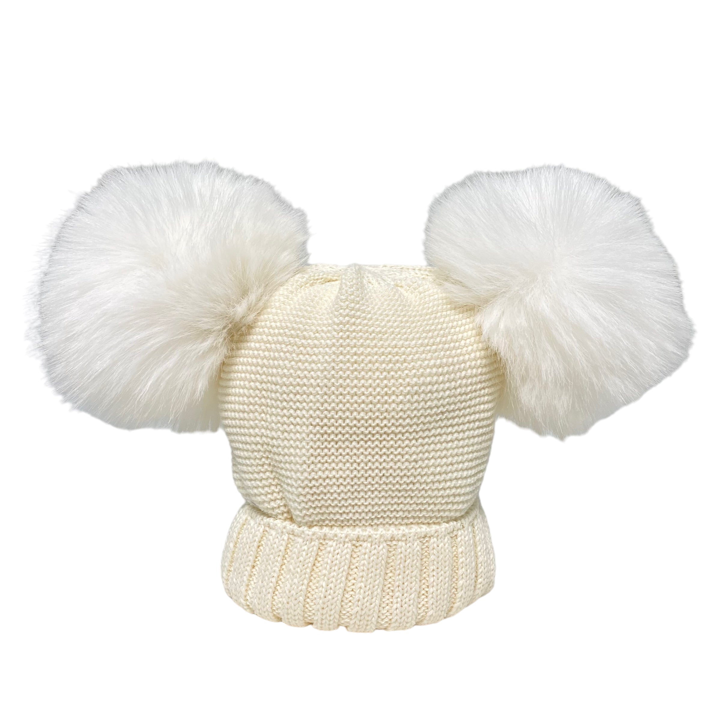 Cappello in misto lana liscio con risvolto, con doppio pom pon ecologico.
