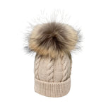Cappello in misto lana con trama particolare, con risvolto e pom pon in pelliccia originale.
