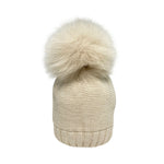 Cappello in misto lana liscio con pom pon in pelliccia in volpe originale.