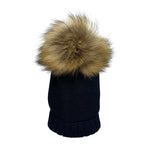 Cappello in misto lana liscio, con risvolto e pom pon in pelliccia originale murmasky.
