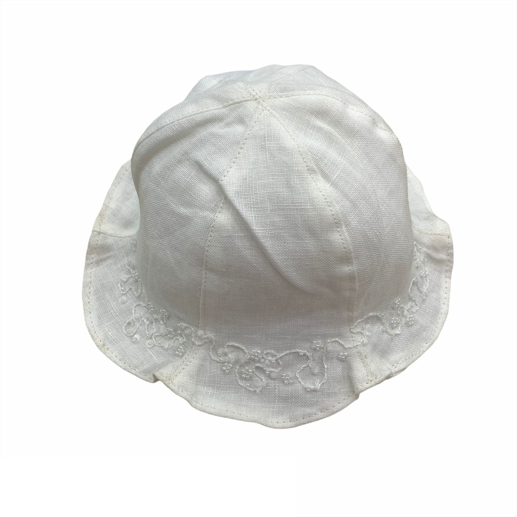 Cappello modello pescatore in lino bianco in tinta unita ed applicazioni di perline sul davanti