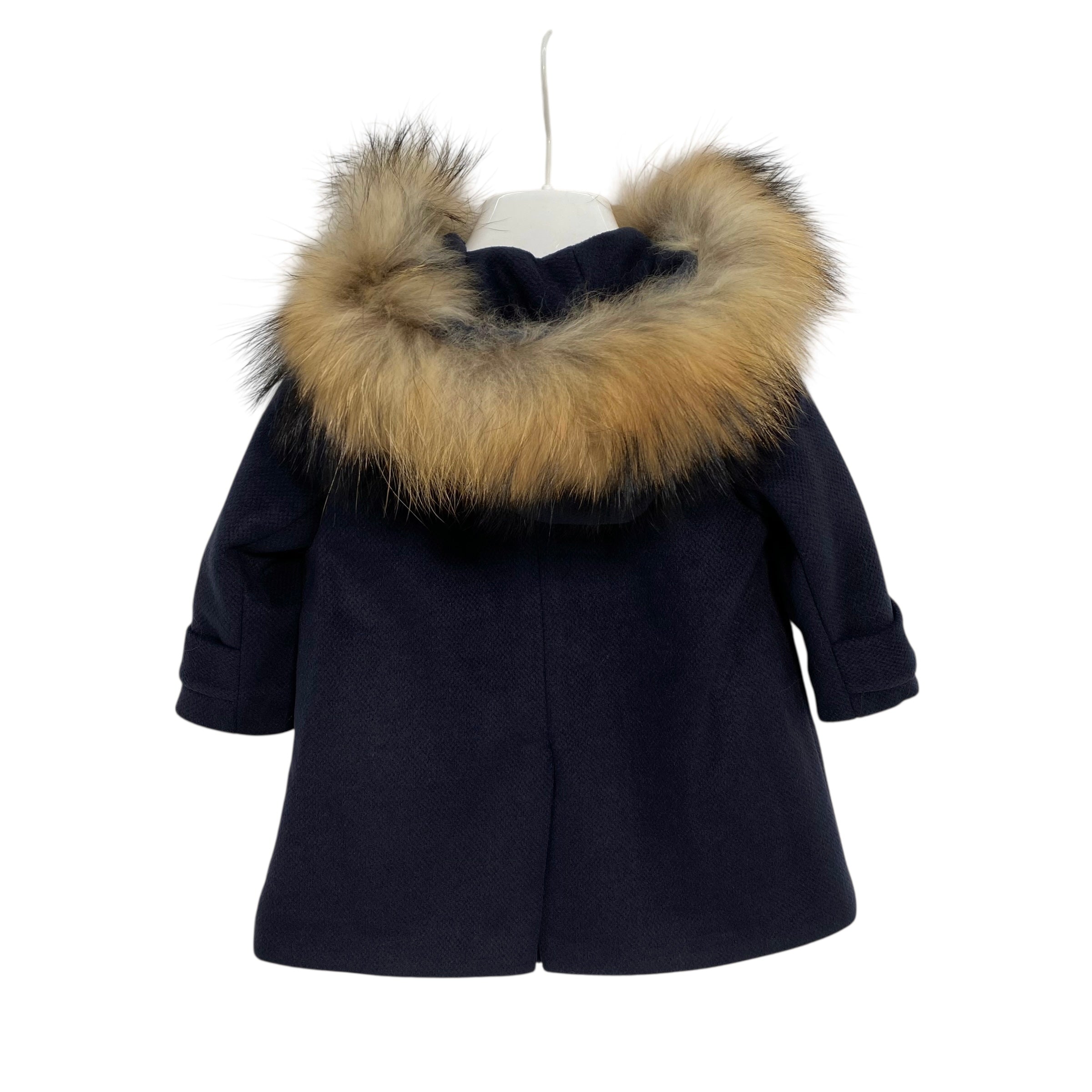 Questo cappotto in panno per bambino, dotato di un cappuccio rifinito con bordo in ecopelliccia, unisce eleganza e funzionalità. Perfetto per completare look sofisticati, garantisce calore e praticità durante le giornate più fredde, assicurando comfort senza rinunciare allo stile. Ideale per occasioni formali o uscite quotidiane alla moda.