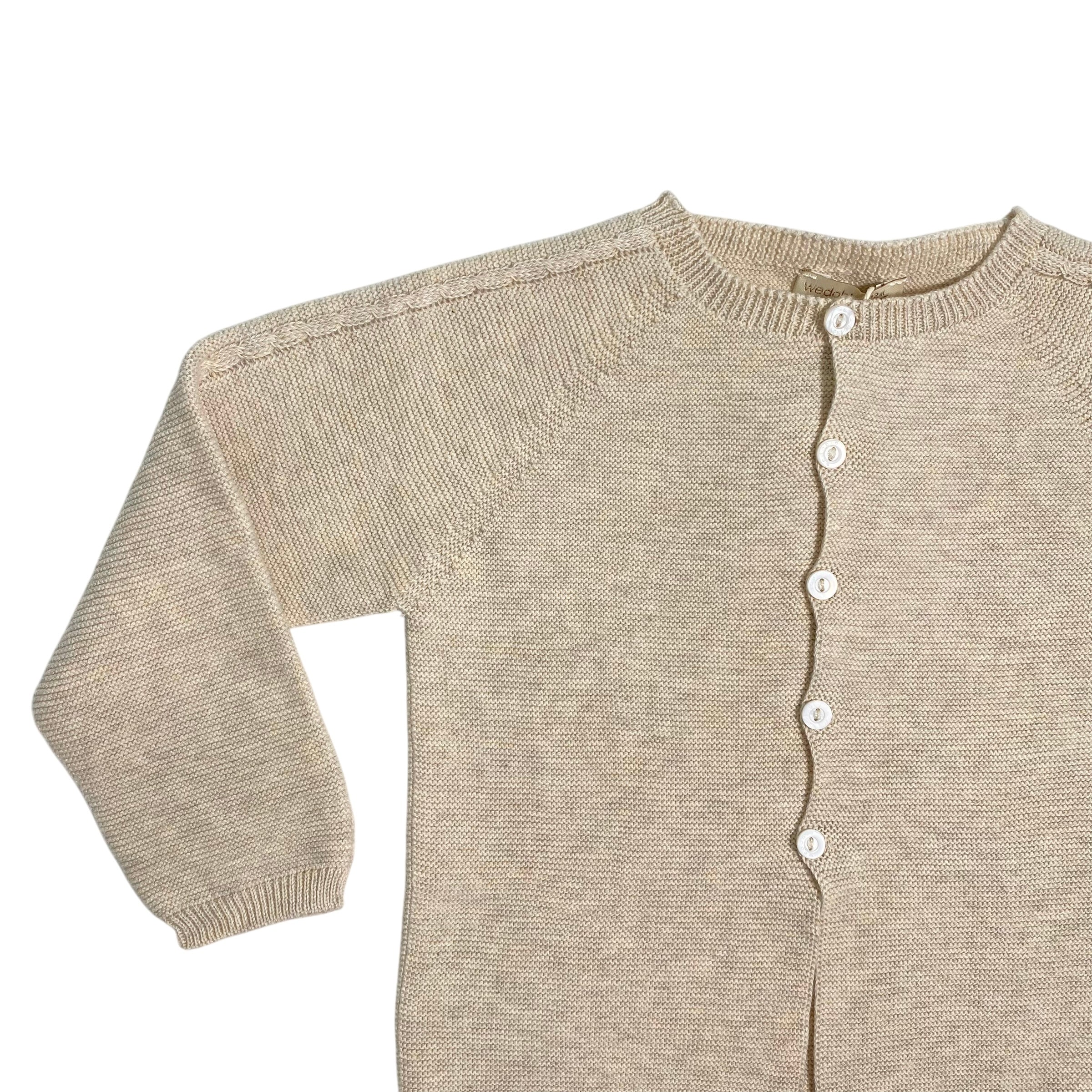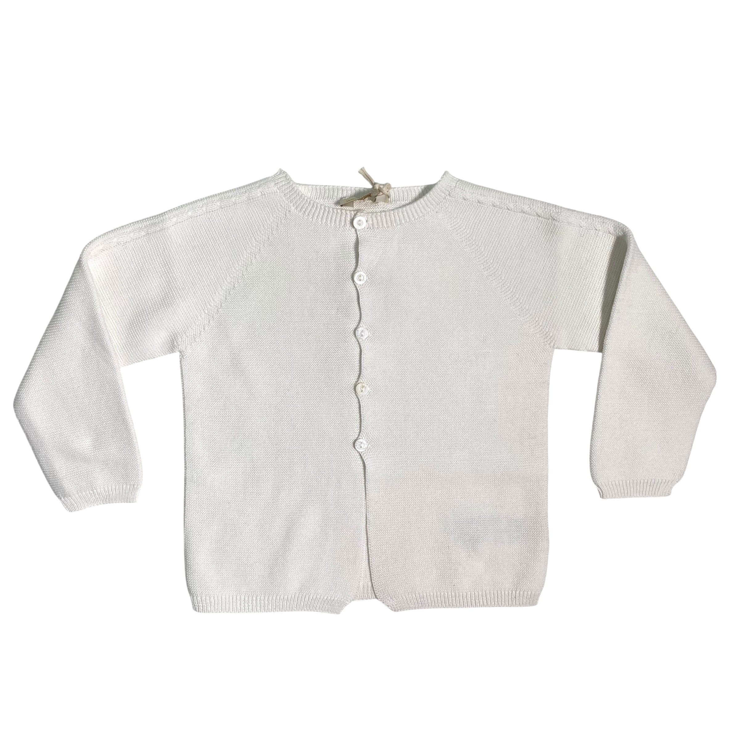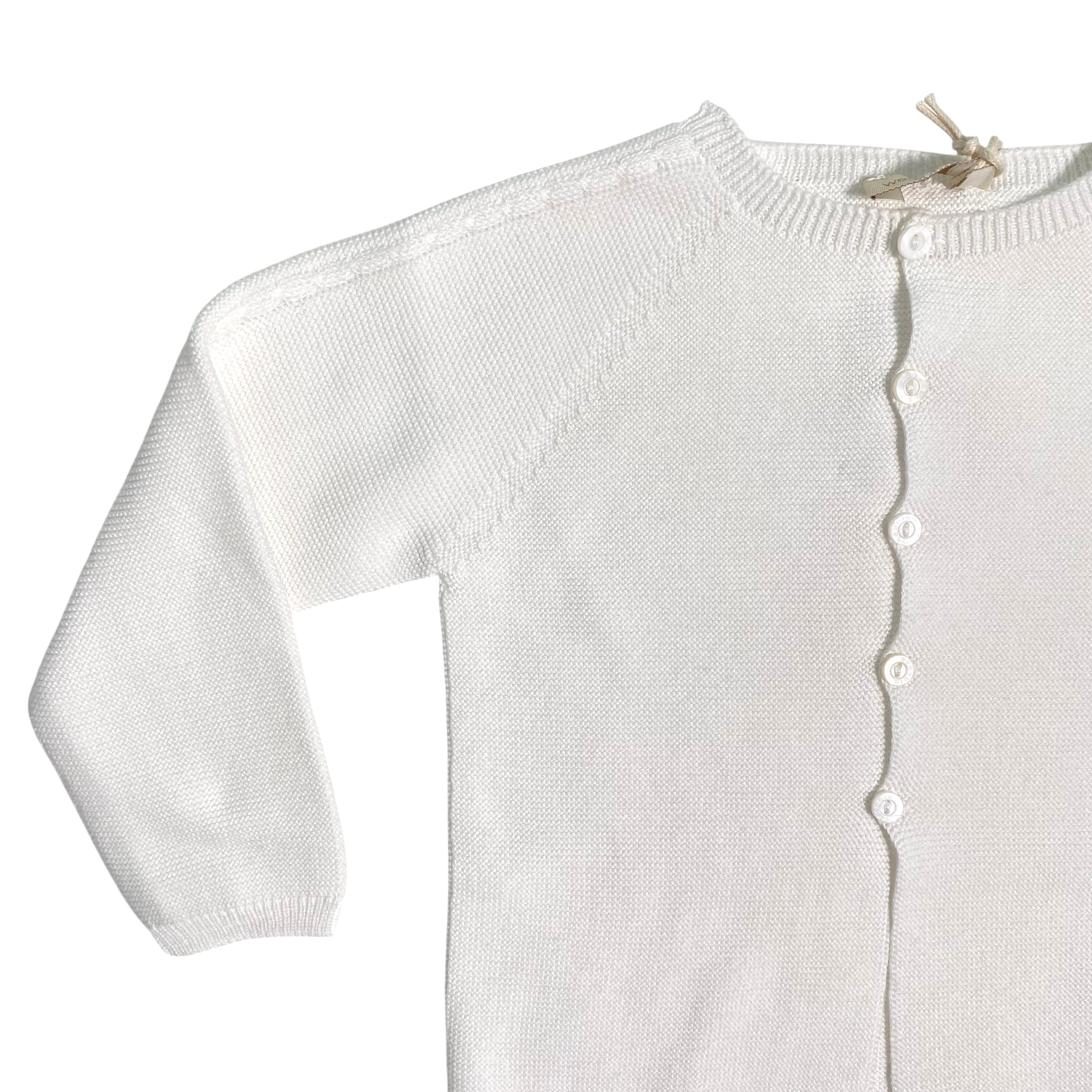 Cardigan girocollo con maniche lunghe lavorato a maglia in morbido cotone biologico, ideale per neonati e bambine. Il cardigan girocollo PURE FEELINGS si chiude sul davanti con bottoni in madreperla. Prodotto in Wholegarment, un pezzo unico senza cuciture, per il massimo comfort del tuo bambino.