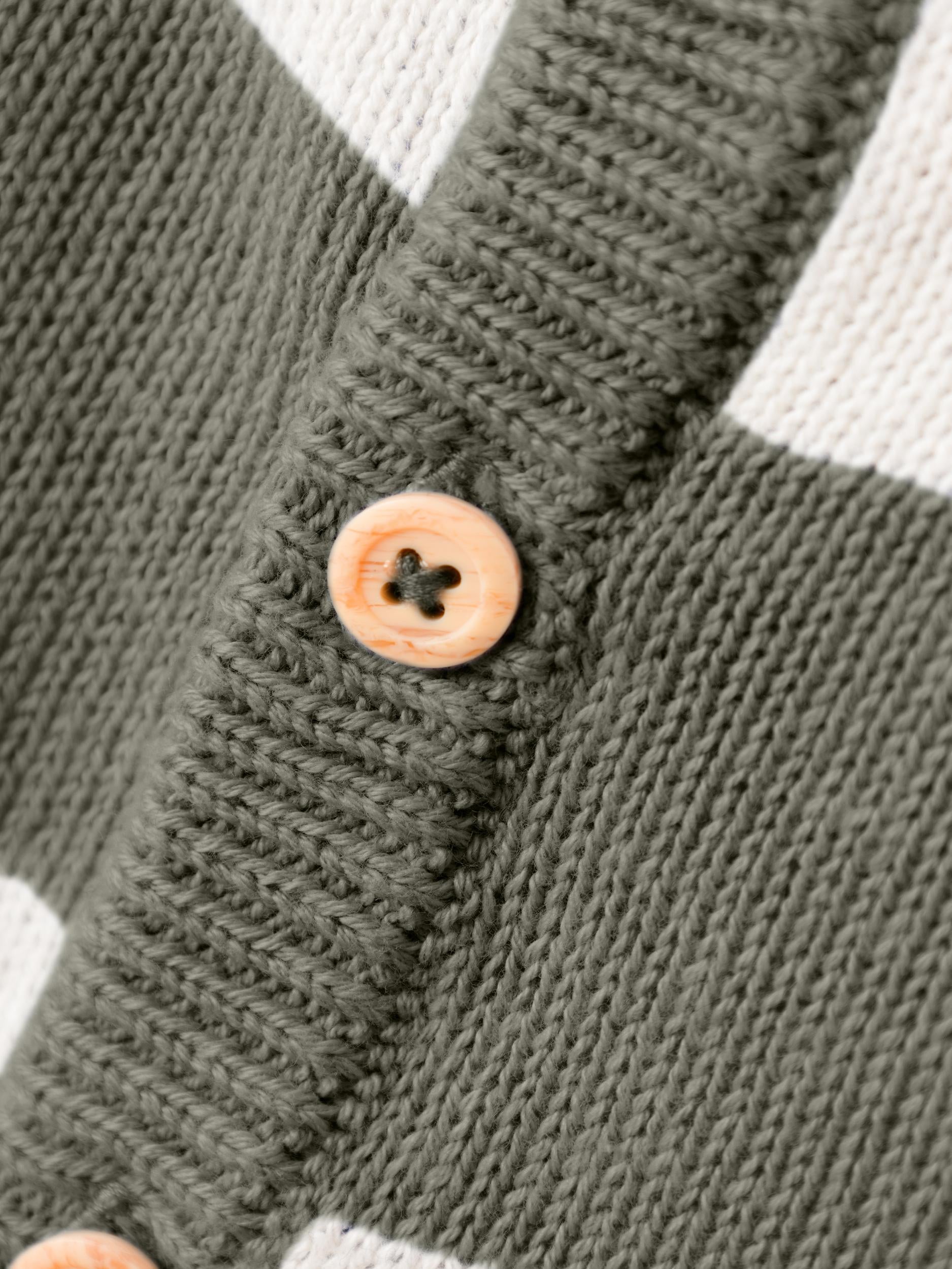 Cardigan in filo di cotone, con bottoncini effetto legno, a righe multicolour.