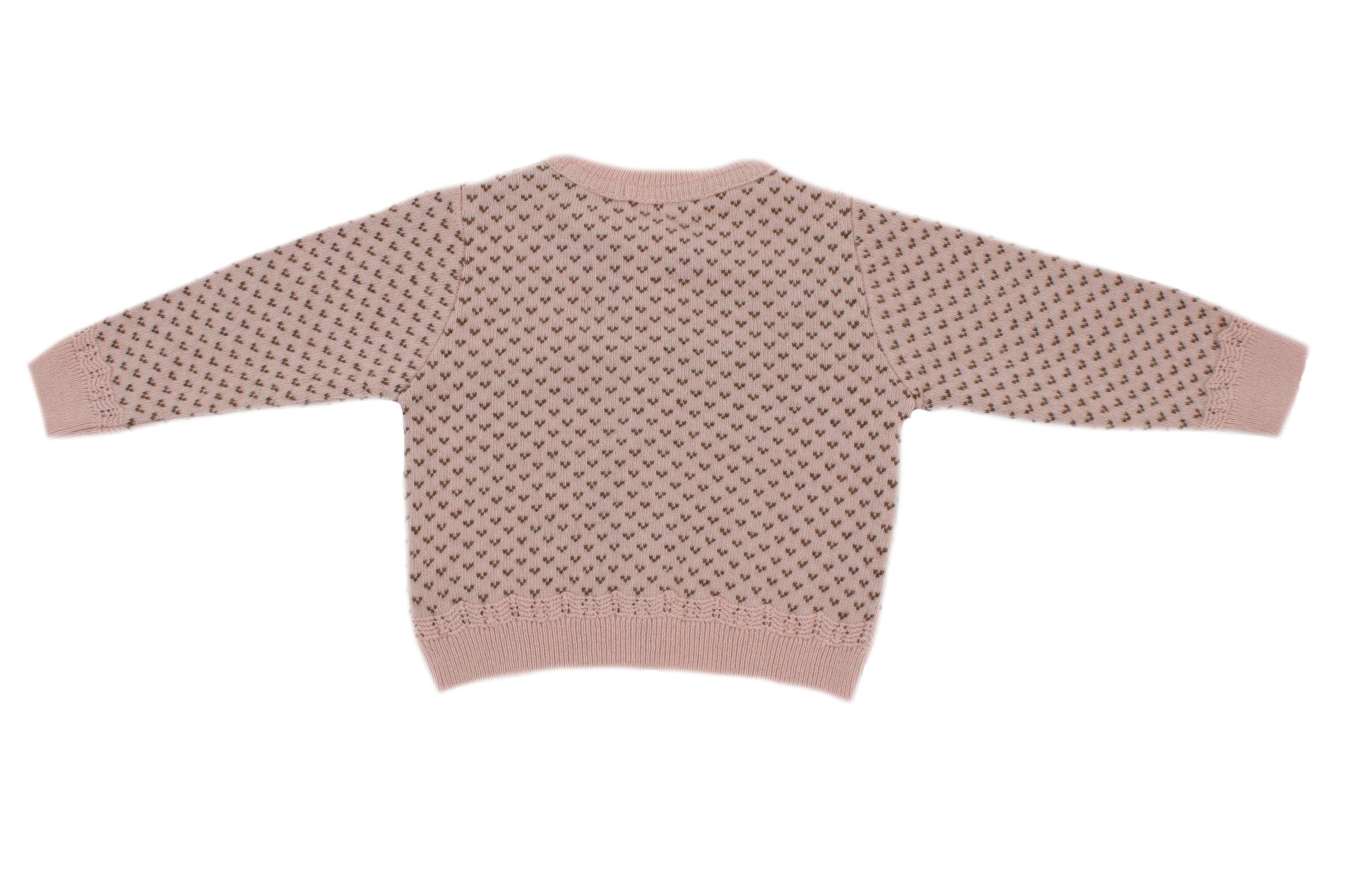Cardigan maniche lunghe girocollo, con chiusura frontale e fantasia cuori.