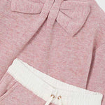 Maglione casual per bambina. Girocollo. Tessuto in tricot morbido al tatto. Elementi decorativi: fiocco.
