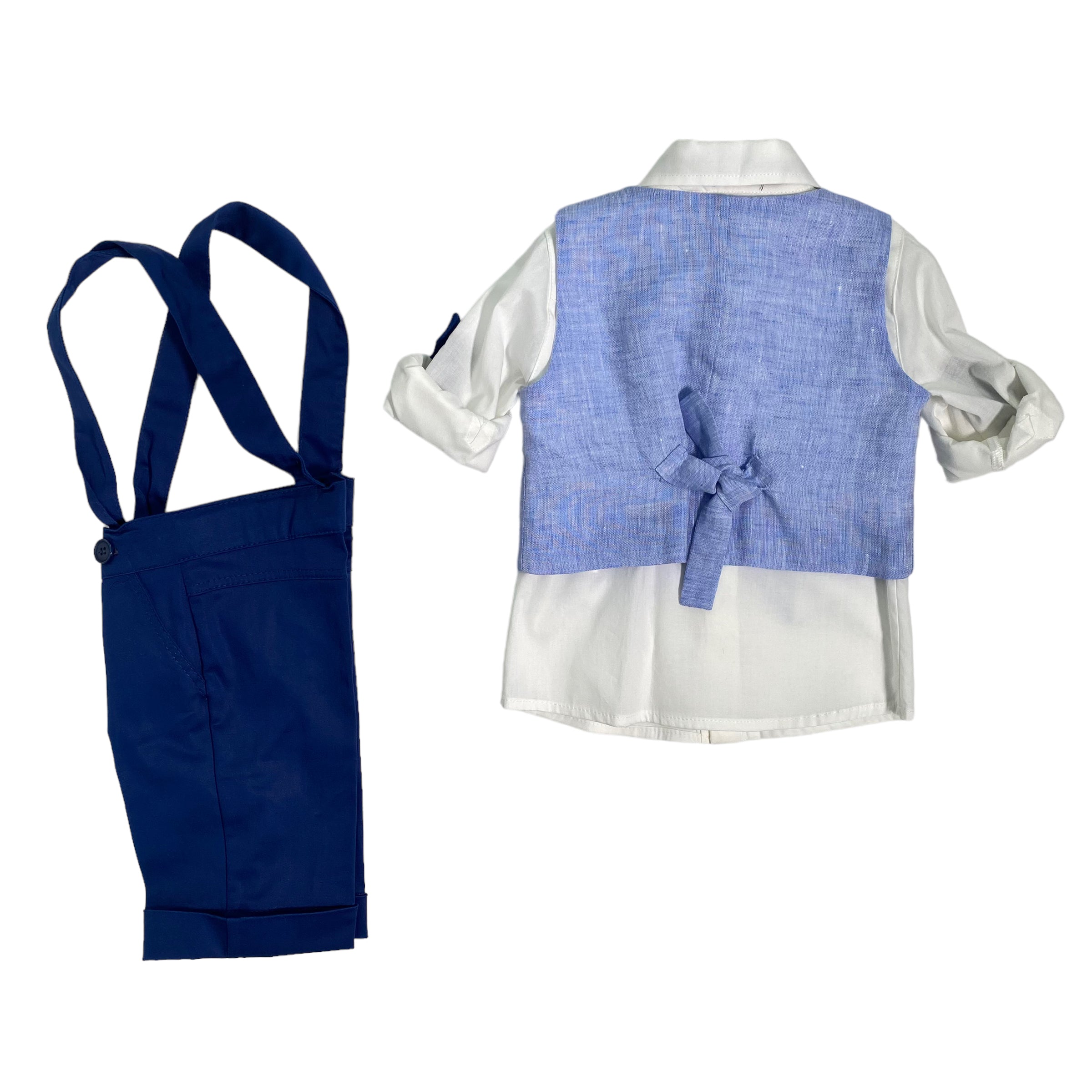 -bermuda blu con bretelle con elastico interno per regolare vestibilità