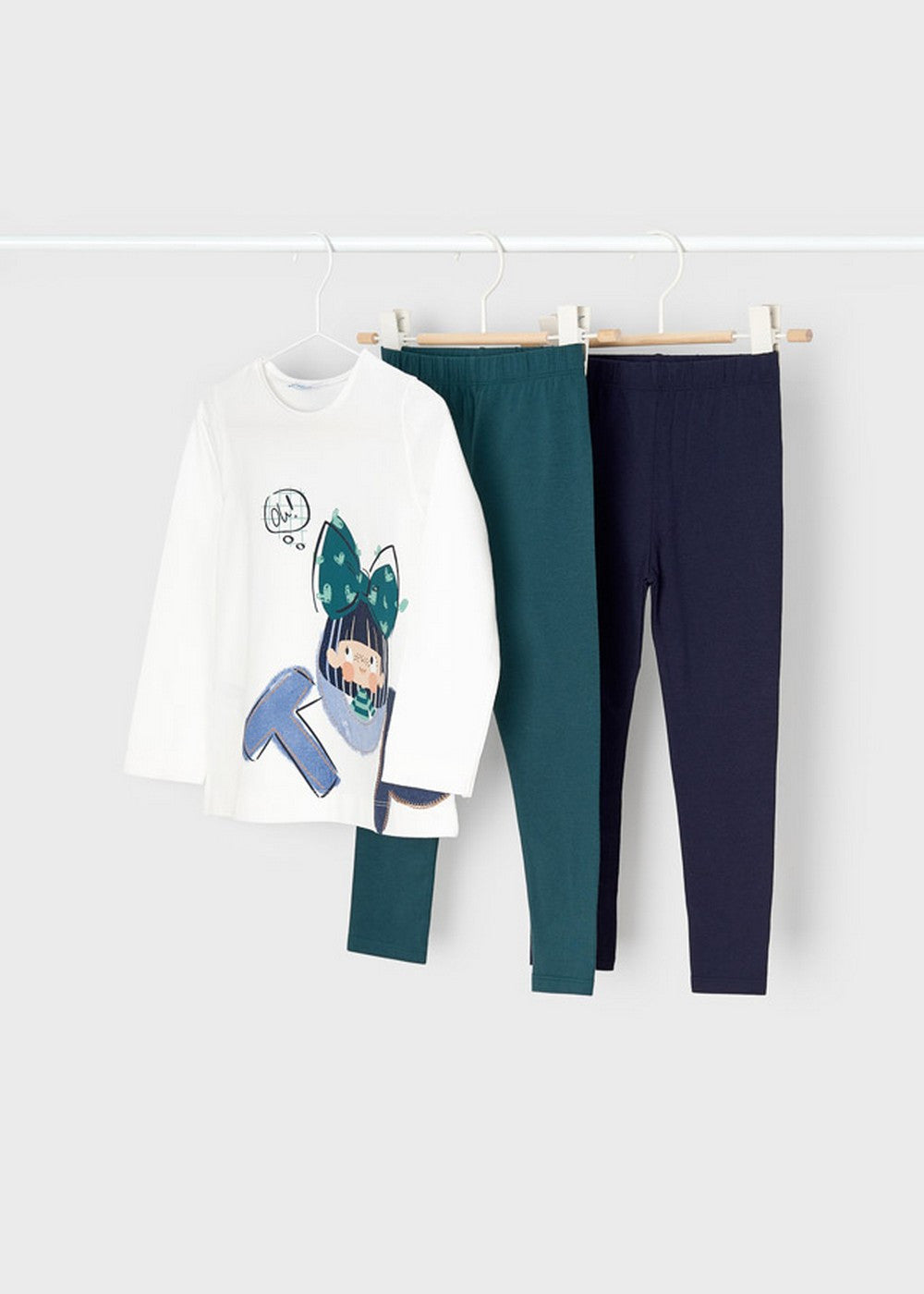 Capo ECOFRIENDS contiene cotone organico. Completo per bambina costituito da maglietta e due leggings abbinati.