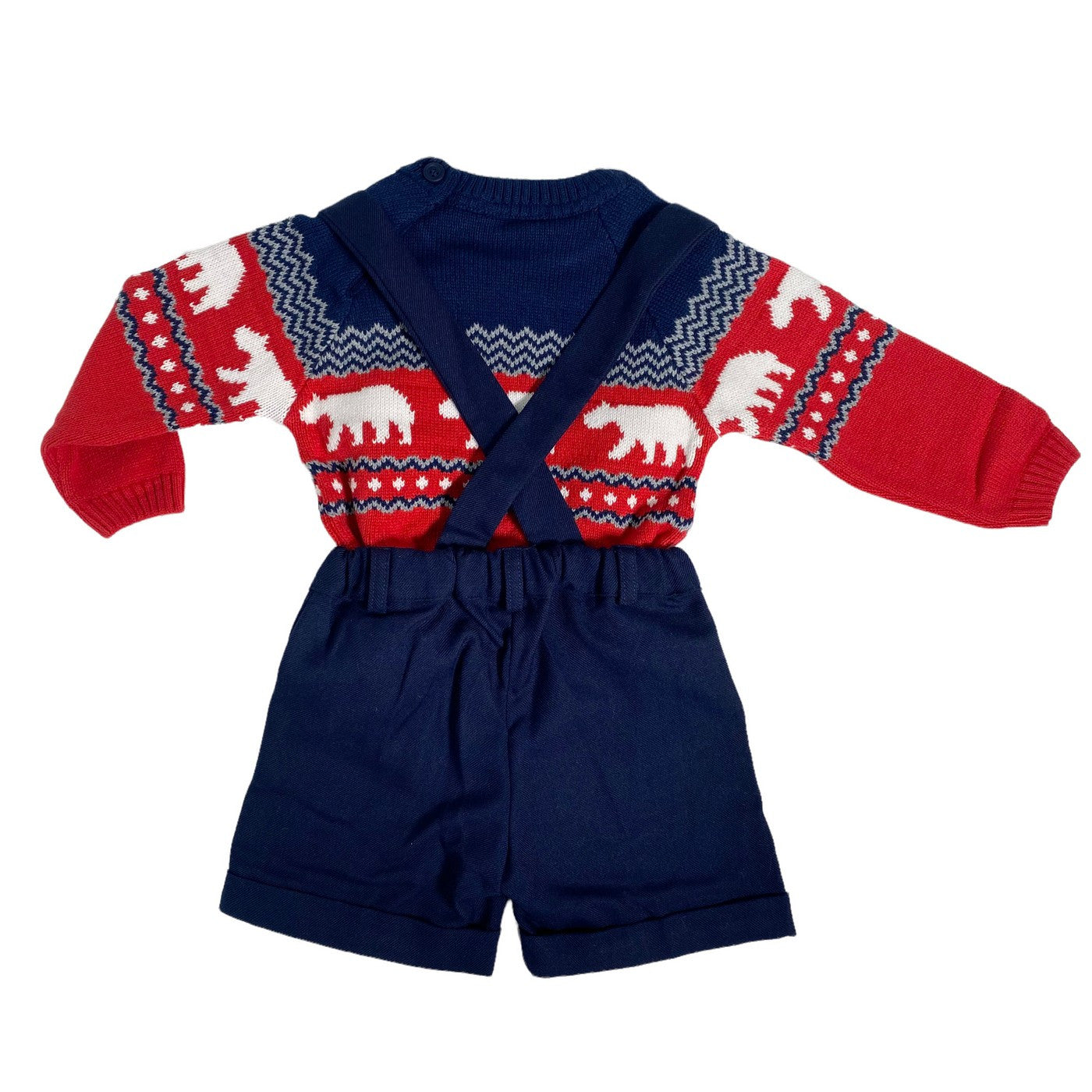 - bermuda con bretelle in caldo cotone, in tinta unita blu