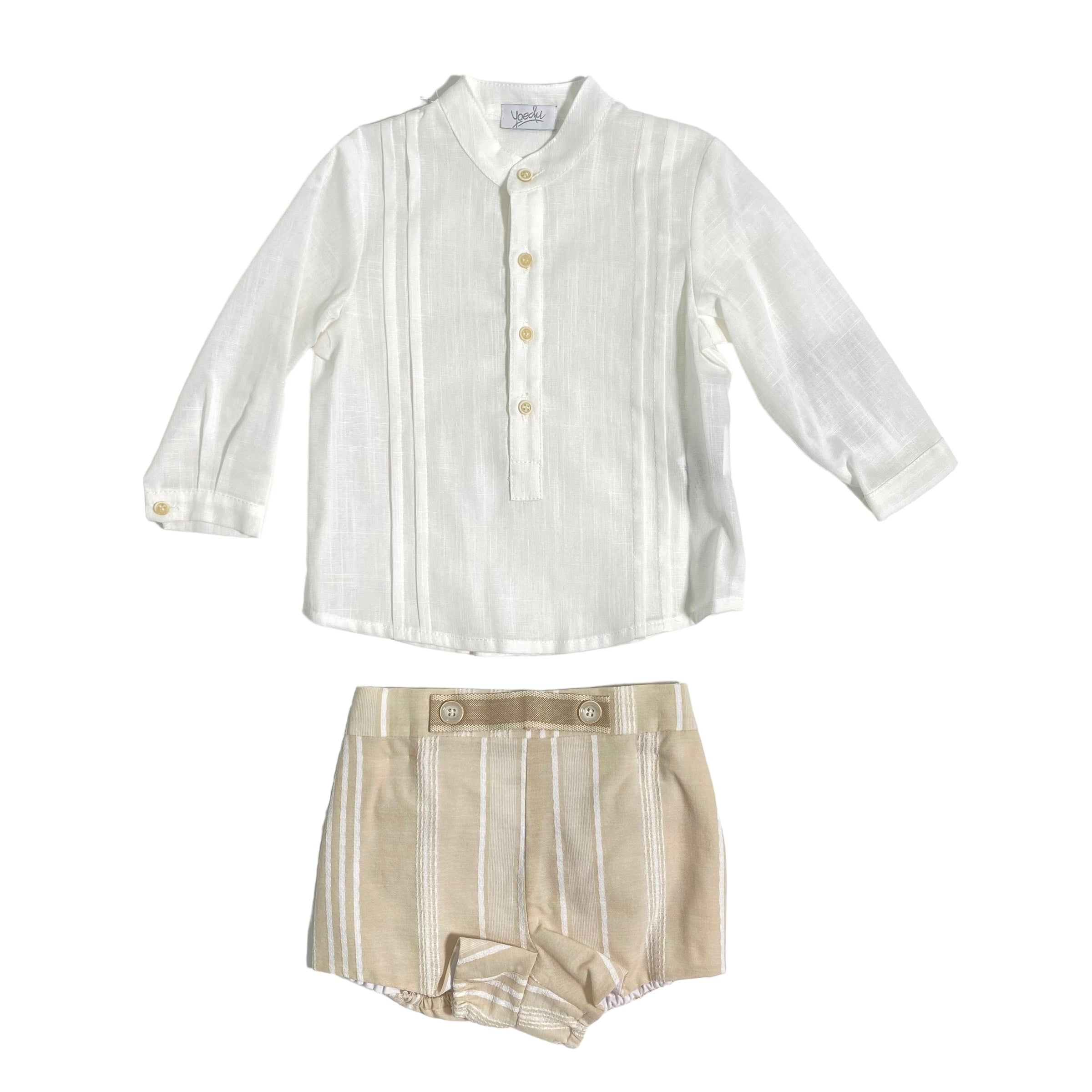 Questo completo per neonati YOEDU è perfetto per ogni occasione, grazie al suo elegante bermuda a righe e alla camicia manica lunga con collo a pistagnina. Ideale per cerimonie ma anche per un look casual di tutti i giorni. Scopri il comfort e lo stile unico di questo completo.