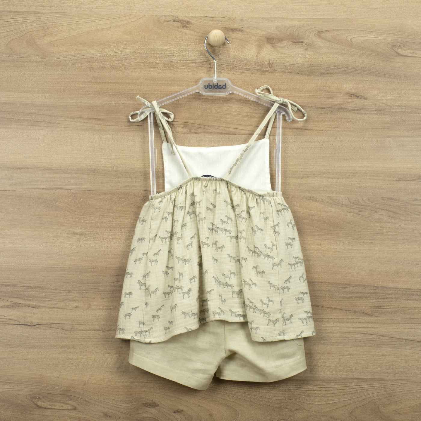 Completo Con Bermuda E Top In Cotone Beige Con Stampa Bambina BABIDU 43483 - BABIDU - LuxuryKids