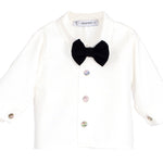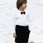 Questo completo elegante per bambino unisce una bermuda in velluto morbido e una camicia in caldo cotone con papillon, perfetti per le festività. Il velluto offre comfort e stile raffinato, mentre la camicia assicura una piacevole sensazione sulla pelle delicata dei più piccoli. Un outfit alla moda che garantisce un aspetto curato e una vestibilità confortevole per ogni momento speciale.