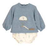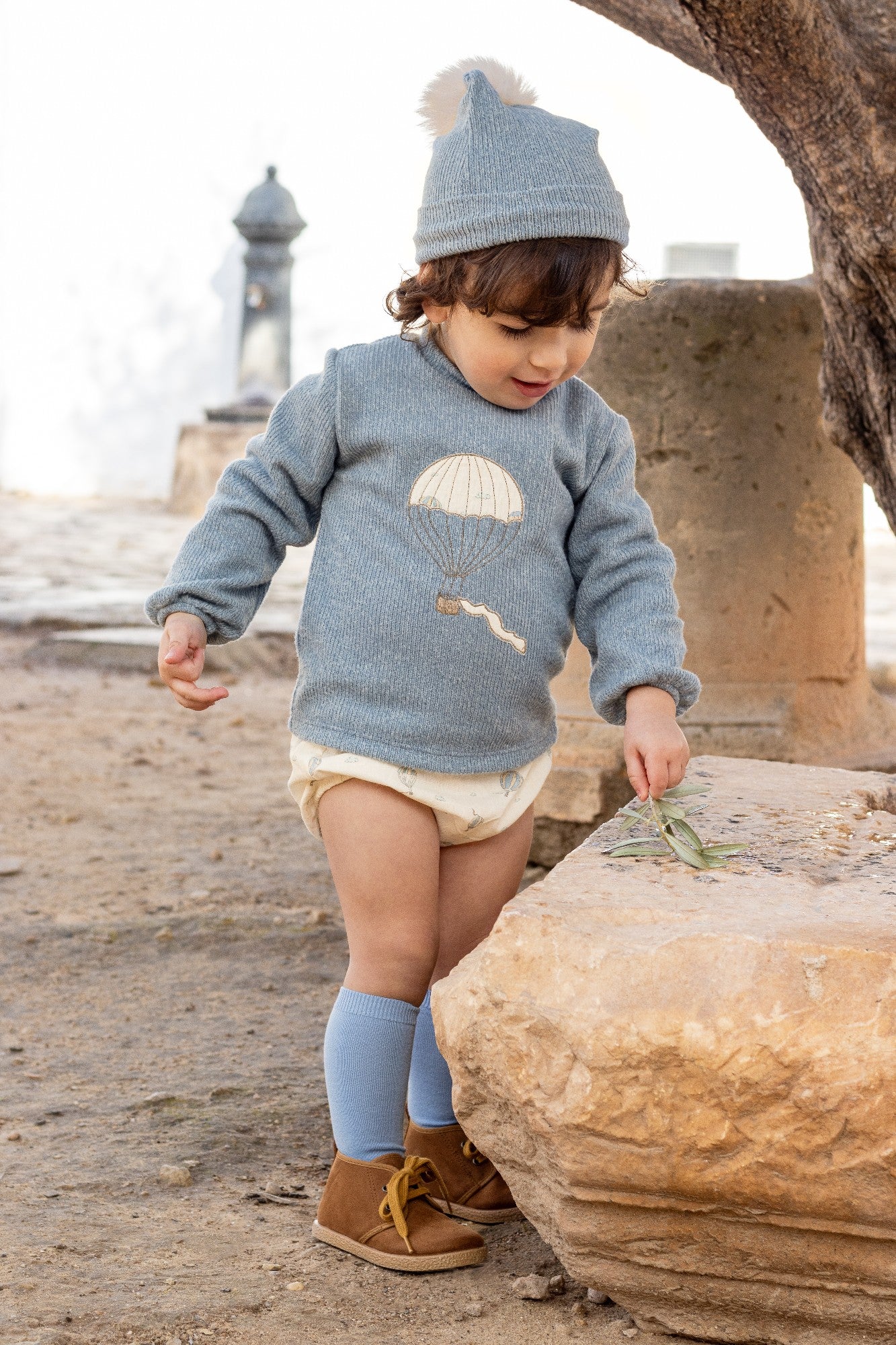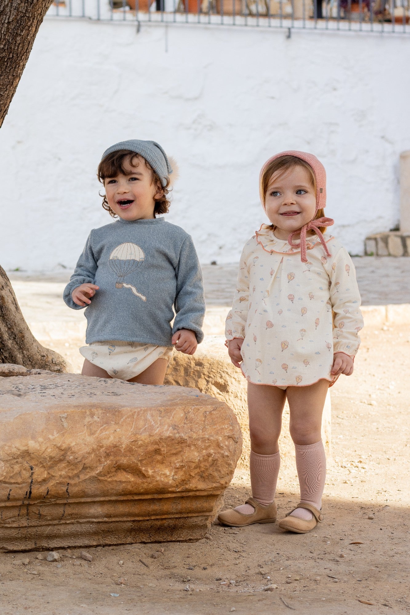 Questo completo neonato CALAMARO unisce comfort e stile grazie al caldo cotone che garantisce morbidezza e protezione. La culotte stampata si abbina perfettamente alla maglia decorata con una delicata mongolfiera, rendendo il capo pratico e alla moda per i più piccoli. Ideale per mantenere il bambino caldo senza rinunciare a un design raffinato.