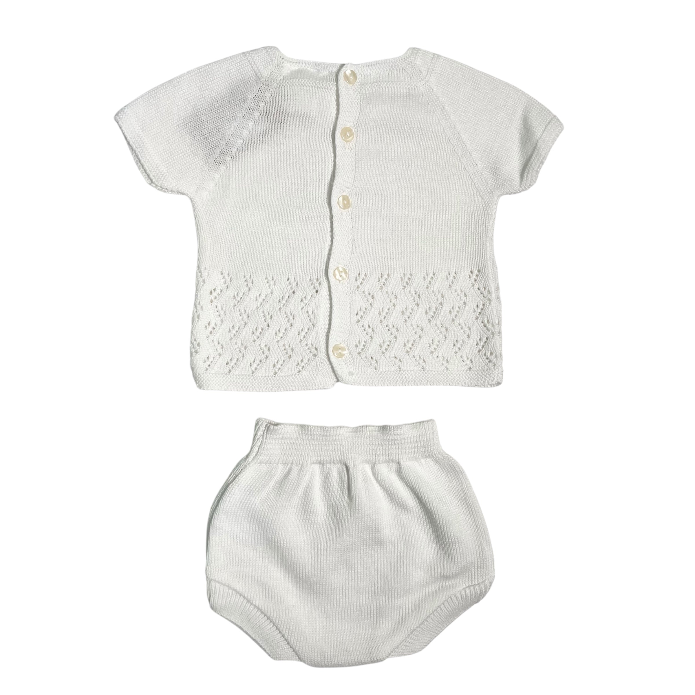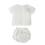 Questo completo due pezzi è perfetto per il tuo neonato. Realizzato in filo di cotone, offre un look elegante e alla moda grazie ai dettagli raffinati come la culotte e la maglia traforata. Comodo e raffinato, perfetto per ogni occasione.