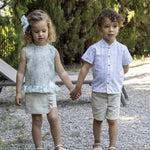 Completo elegante per bambina composto da pantagonna e camicia coordinata. Un abbinamento sofisticato e versatile, perfetto per occasioni speciali o per un look raffinato nel quotidiano. La pantagonna offre comfort e movimento, mentre la camicia garantisce una vestibilità impeccabile. Realizzato con attenzione ai dettagli, questo set rappresenta lo stile e la qualità che caratterizzano la collezione Calamaro. Ideale per le piccole fashioniste che amano distinguersi con eleganza.