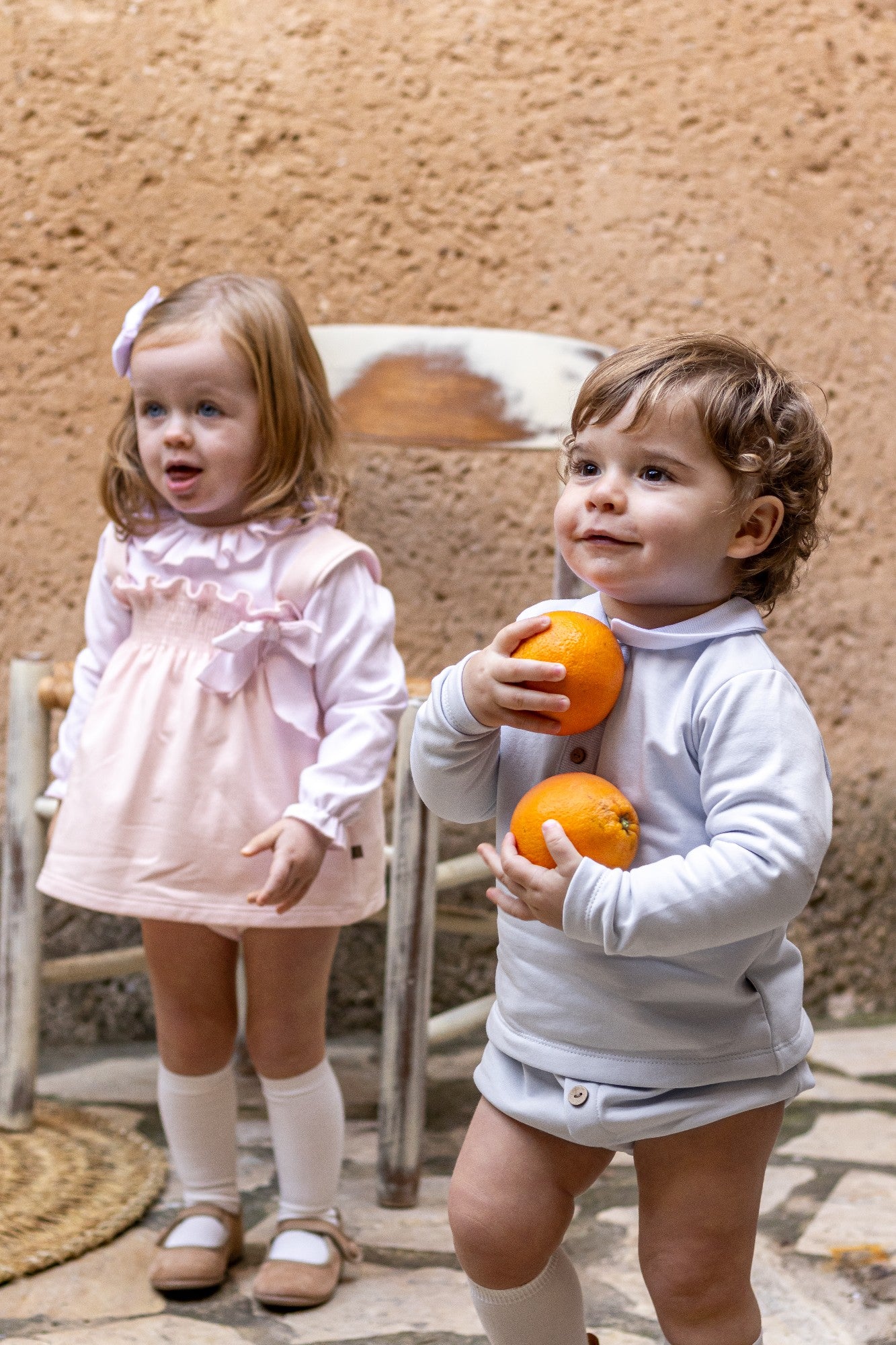 Questo completo per neonata, composto da salopette e camicia in caldo cotone, unisce eleganza e praticità. Il tessuto morbido e caldo garantisce comfort durante le giornate più fresche, mentre il design alla moda assicura uno stile raffinato per ogni occasione. Perfetto per chi cerca un capo versatile e di qualità per la propria bambina.
