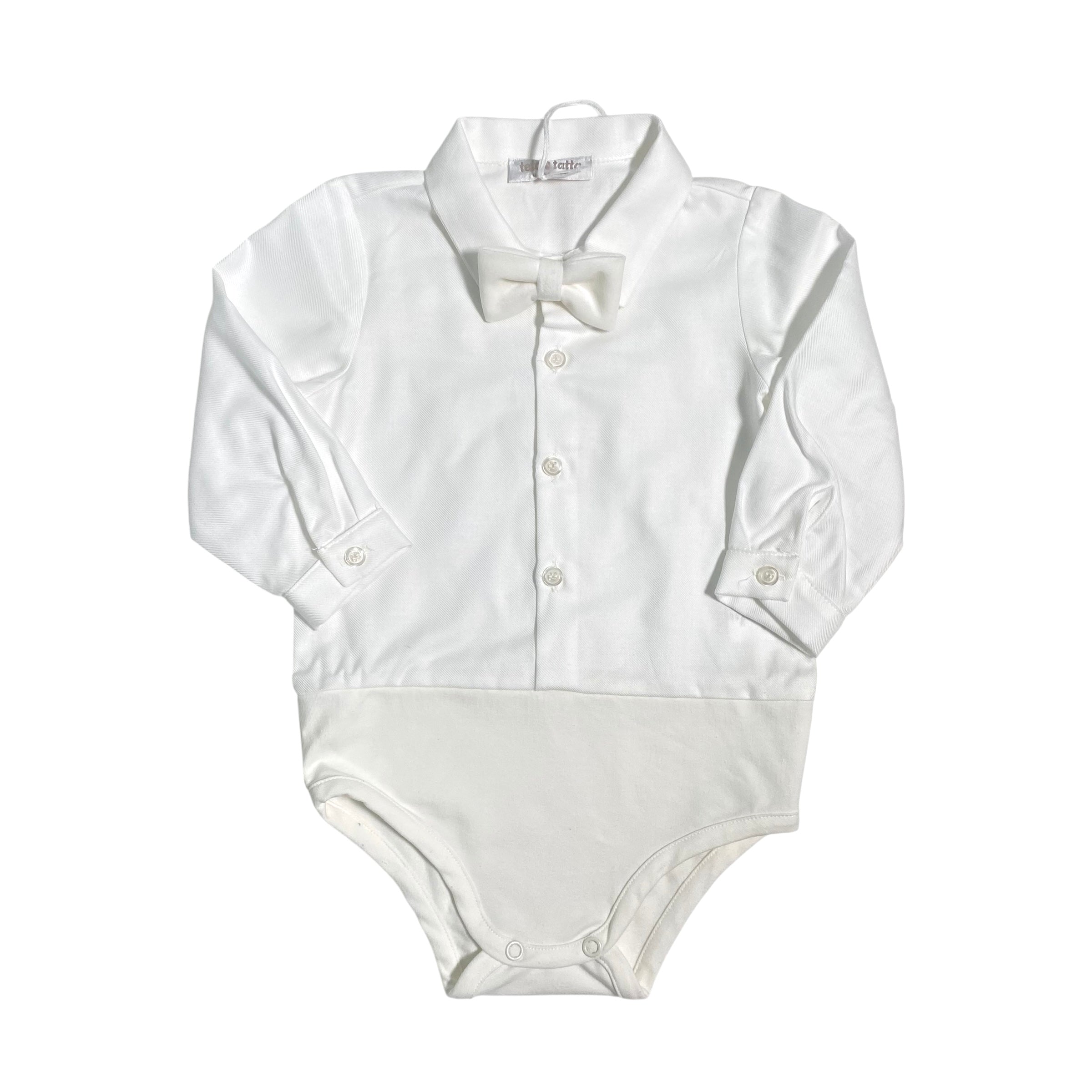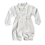 Questo completo elegante per neonato unisce una salopette in velluto raffinata a una camicia body con papillon, creando un outfit perfetto per il battesimo. Realizzato con materiali delicati e di alta qualità, assicura comfort e stile contemporaneo, ideale per occasioni speciali in cui è importante unire tradizione e moda.