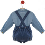 Questo completo con salopette in denim e camicia in garza di cotone con bottoncini è l'outfit perfetto per il tuo neonato. Versatile, pratico e alla moda, è ideale per ogni occasione. Il denim garantisce resistenza e comodità, mentre la camicia in garza di cotone offre morbidezza sulla pelle delicata del tuo bambino.