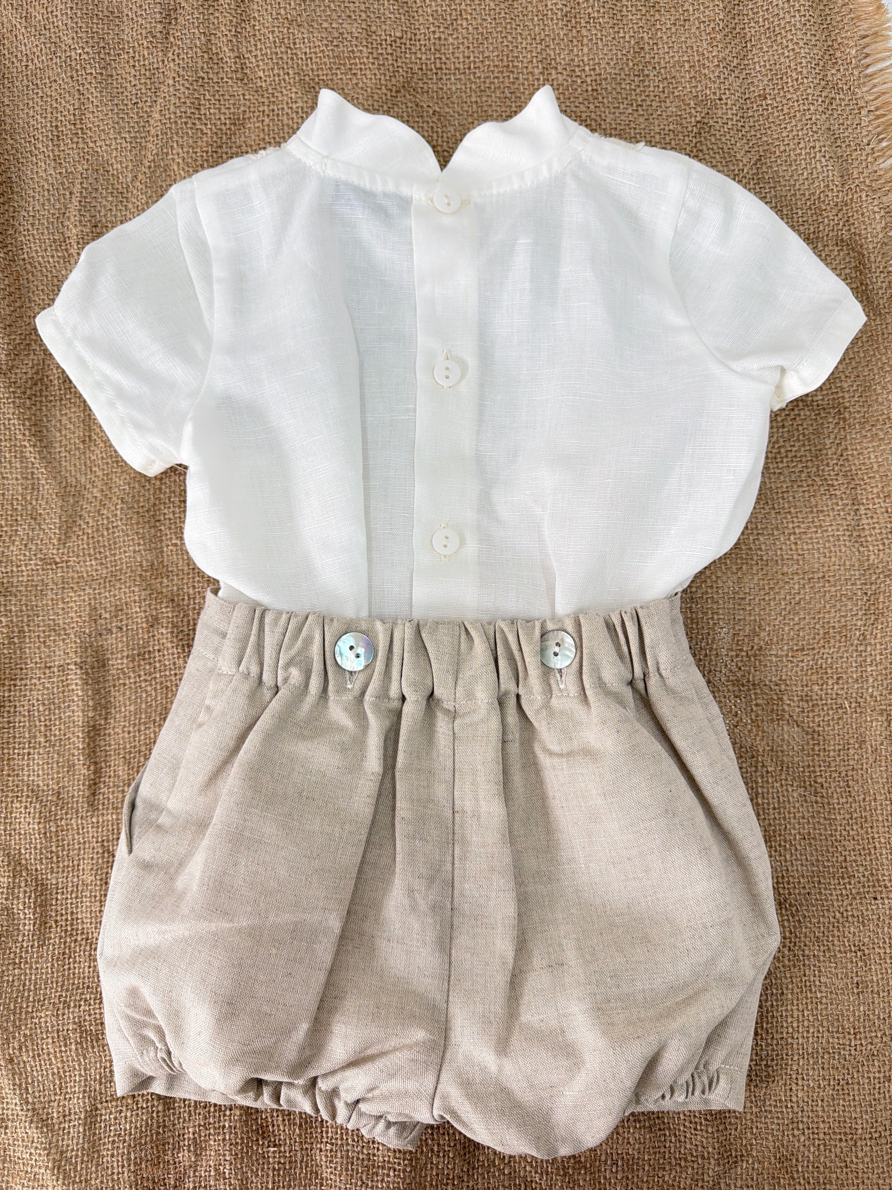 Completo Corto Elegante In Lino Con Bermuda Neonato PONTO POR PONTO 6502