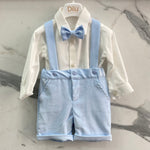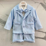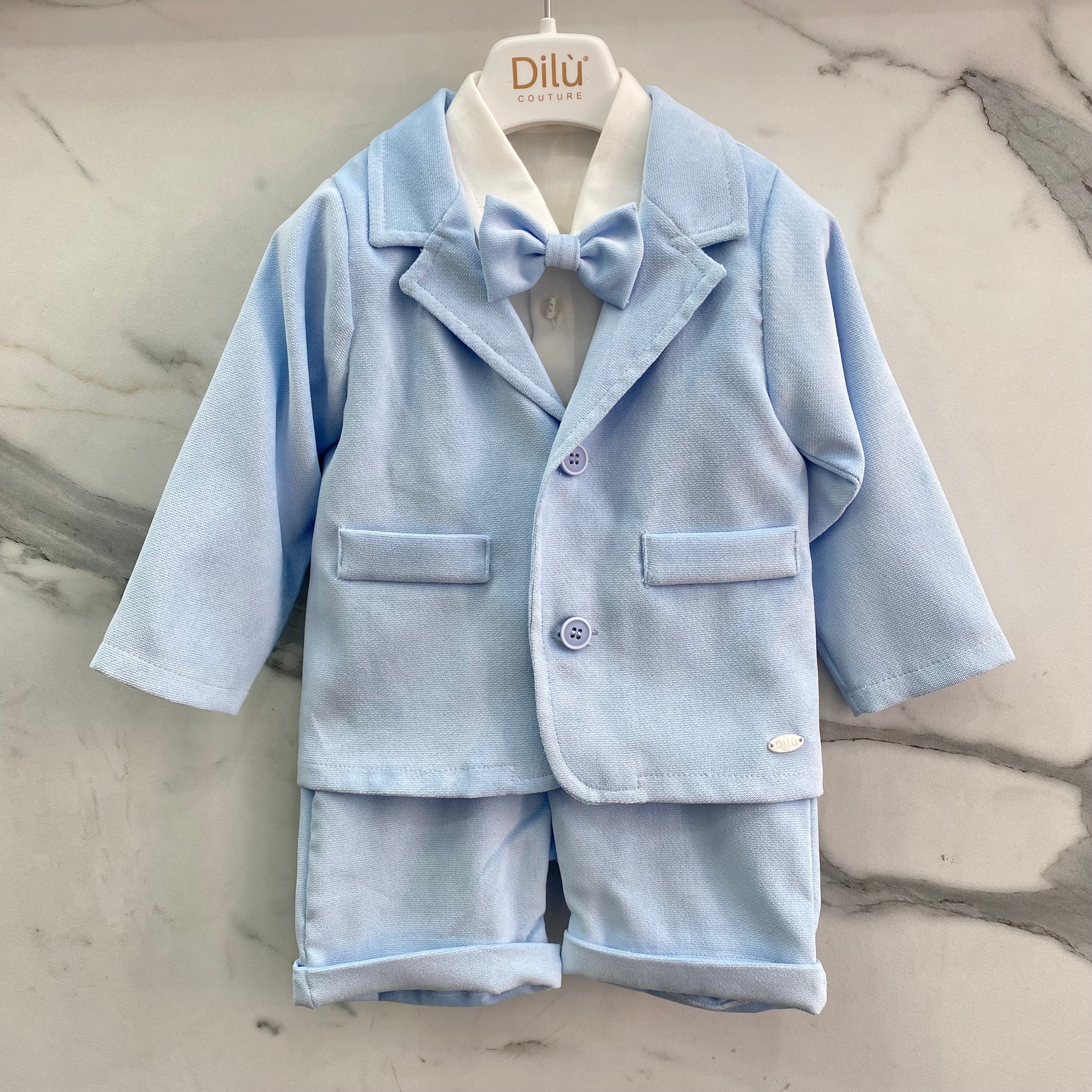 Questo completo elegante in velluto per neonato NINNAOH è perfetto per le occasioni speciali come il battesimo. Composto da bermuda con bretelle, camicia in tinta unita, papillon e giacca in velluto, dona un aspetto elegante al tuo bambino. Un must-have per tutte le famiglie che amano vestire con stile.