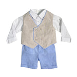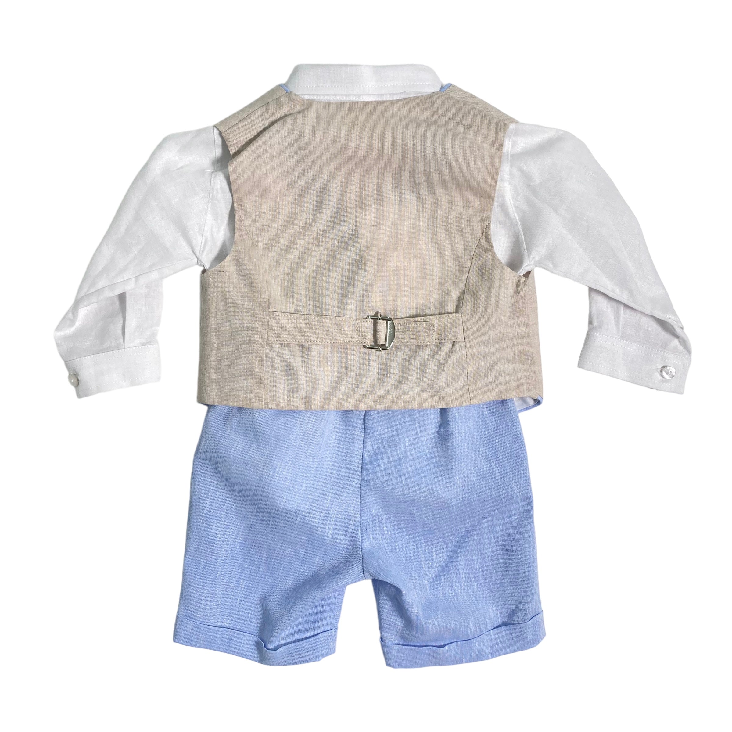 - panciotto doppiopetto in tinta unita beige con profilo celeste