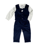 Completo elegante in velluto per neonati, perfetto per ogni occasione speciale. Include pantaloni lunghi, camicia in caldo cotone, bretelle, panciotto e papillon. Aggiungi un tocco di stile al tuo piccolo e lascia che si distingua con questo completo elegante.