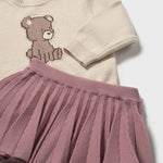 Contiene poliestere riciclato. Delizioso completo per neonata costituito da maglioncino e gonna abbinati.