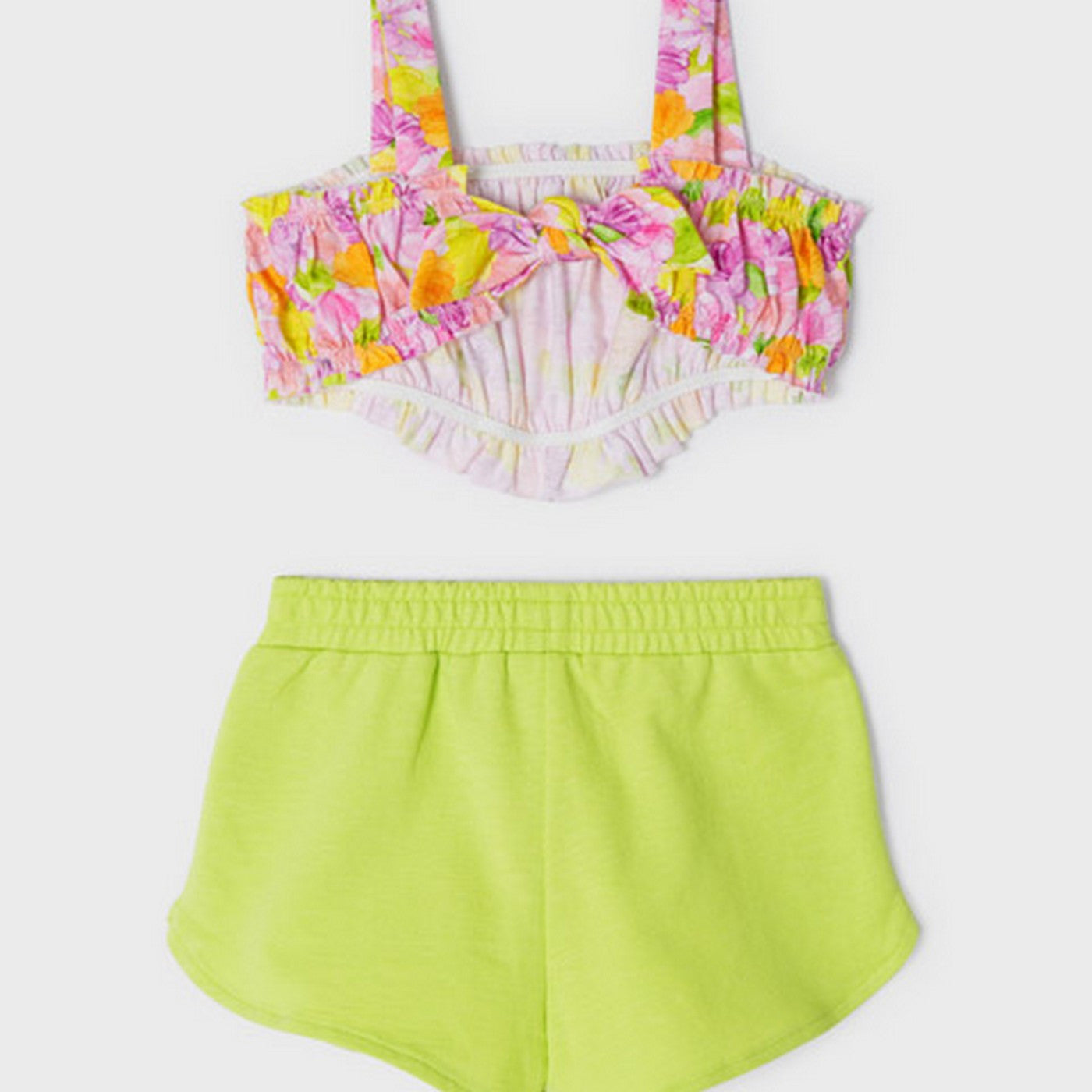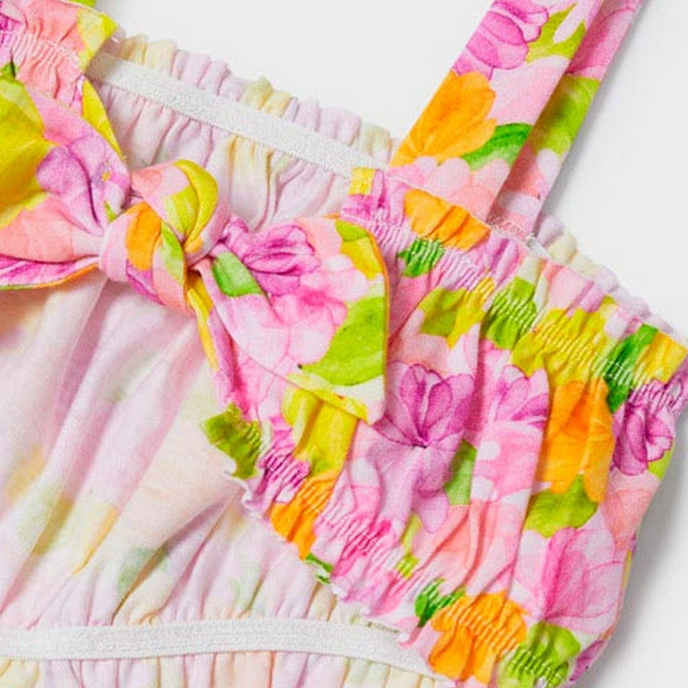 - Top Floreale con arricciatura con filo elastico e fiocco sul retro.