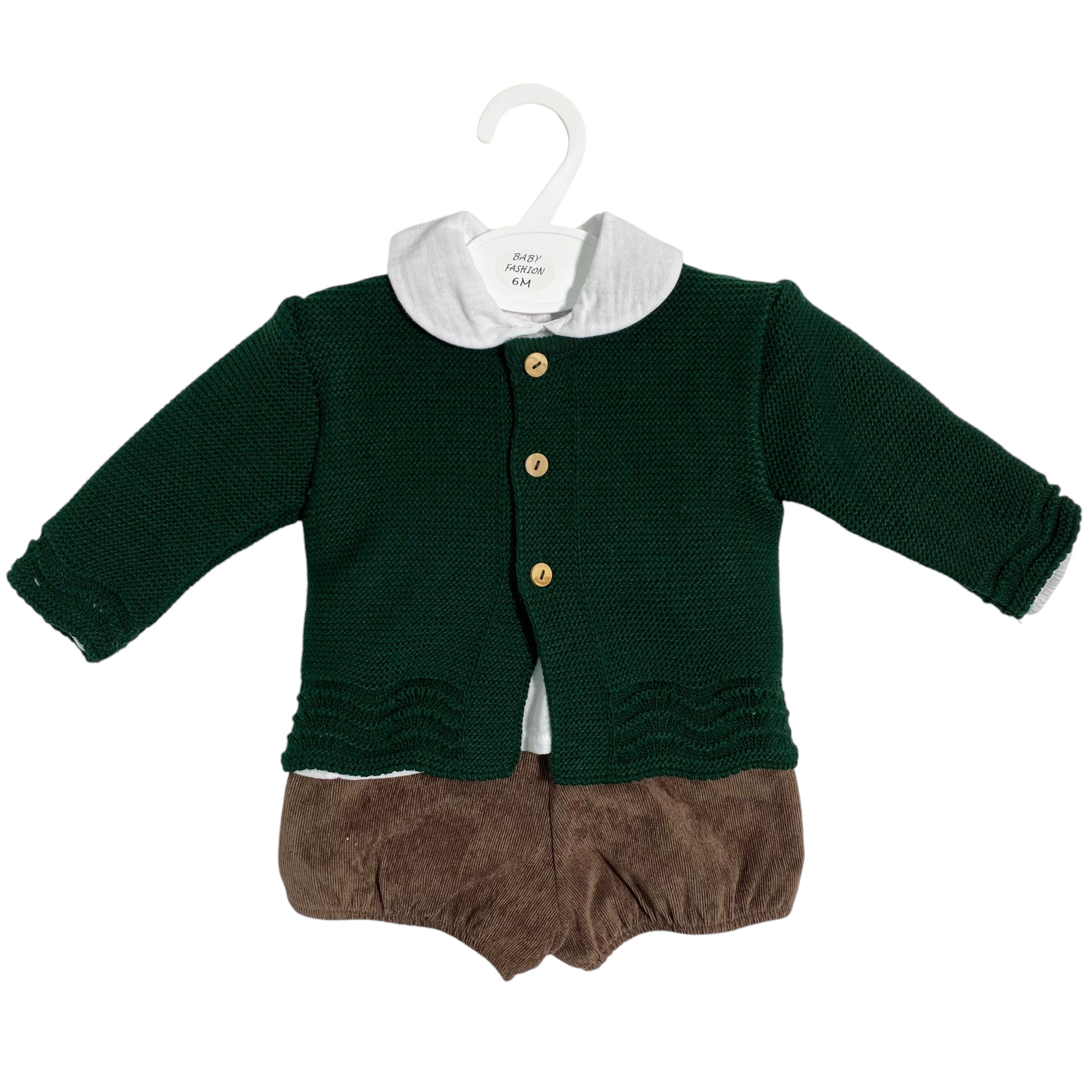 Esclusivo e alla moda, il completo tre pezzi BABY FASHION è perfetto per il tuo neonato/a. Con bermuda in morbido velluto millerighe, camicia bianca con collo tondo e cardigan in tessuto anallergico acrilico, il tuo bambino/a sarà sempre elegante e comodo per ogni occasione.