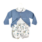 Questo completo tre pezzi BABY FASHION è perfetto per il tuo neonato. Il pantaloncino stampato con elefantini e la camicia in cotone con collo tondo sono casual e alla moda. Il cardigan abbinato aggiunge eleganza. Realizzato in morbido cotone, è comodo e resistente.