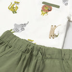Maglietta manica corta per bebé. Bottone sulla spalla per facilitare la vestibilità del capo. Design stampato.