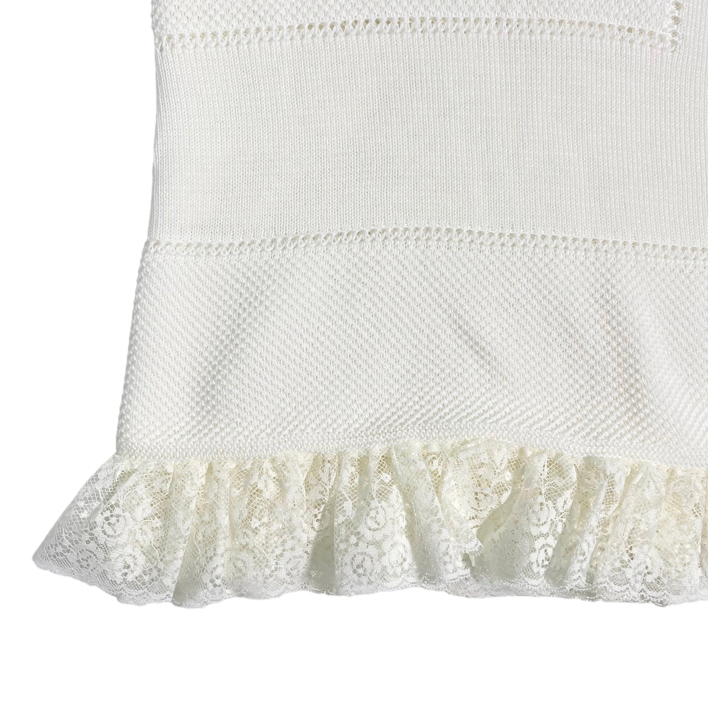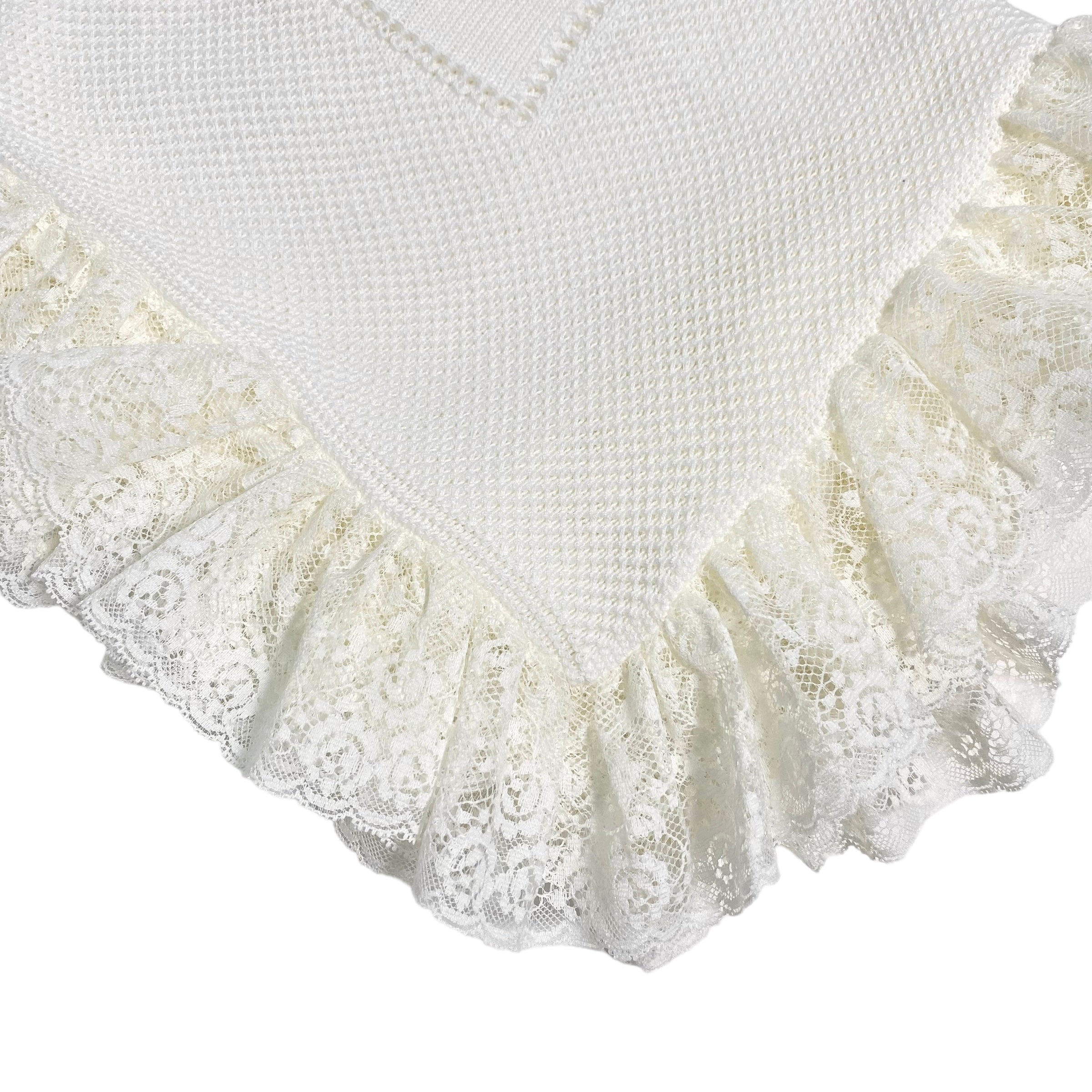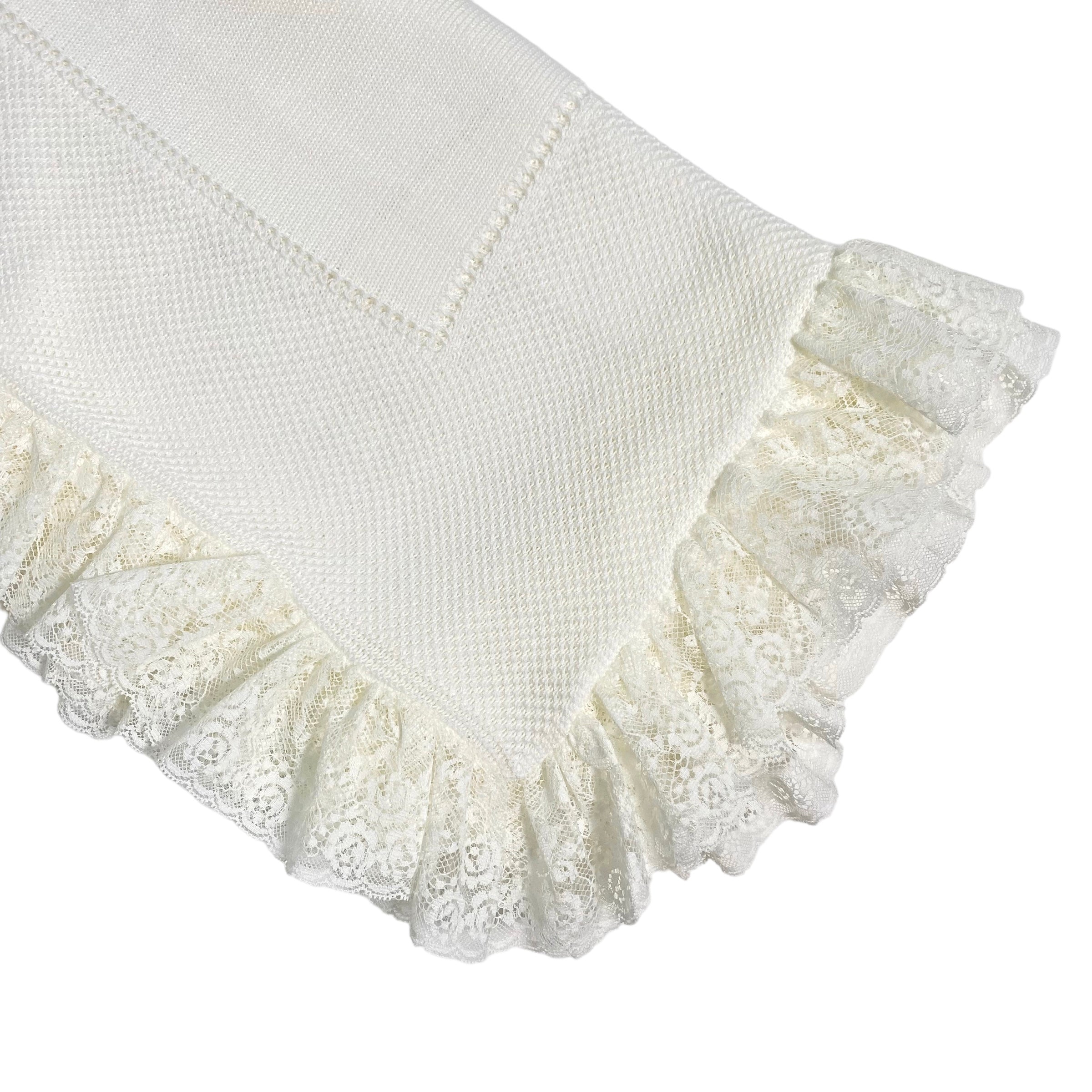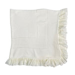Coperta in filo di cotone, in tinta unita panna, con bordo in pizzo.