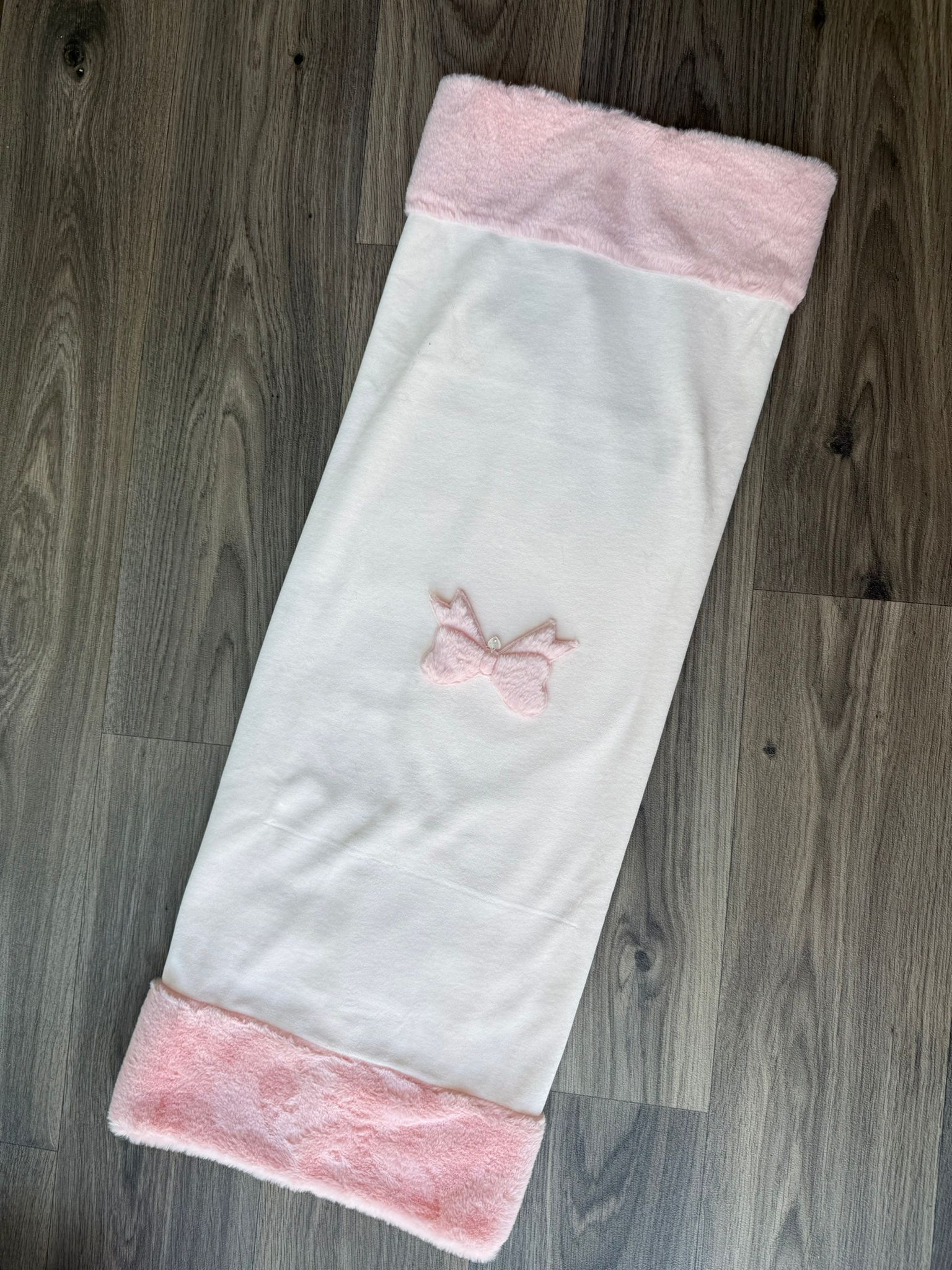 Questa coperta scialle in ciniglia con appicazione di fiocco in peluche è perfetta per la tua neonata. Con una misura di 65x85 cm, è ideale per l'uscita clinica e versatile per l'uso quotidiano. Realizzata con eleganza e con cotone di qualità, garantirà il massimo comfort al tuo bambino. Scegli Ninnaoh per la tua bimba.