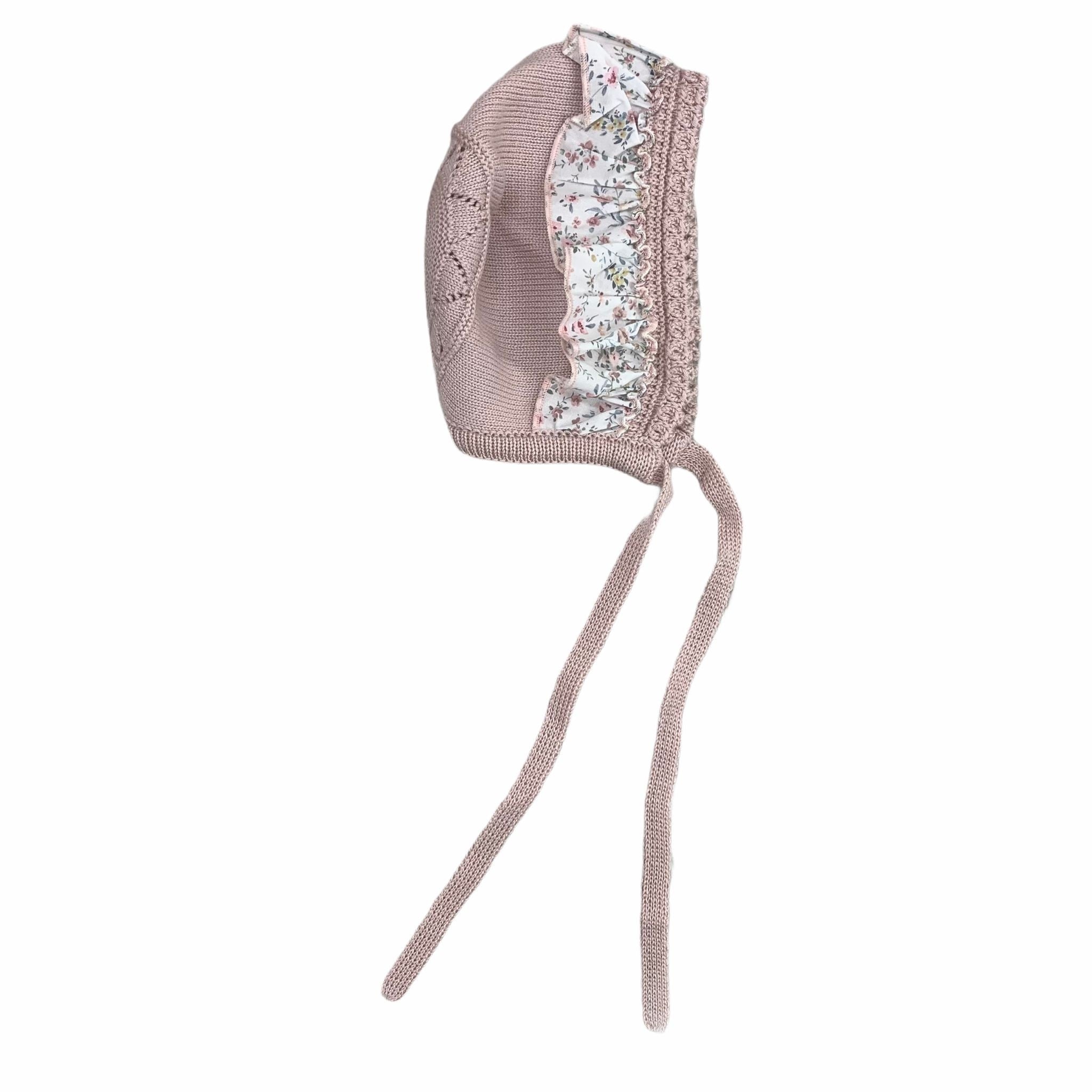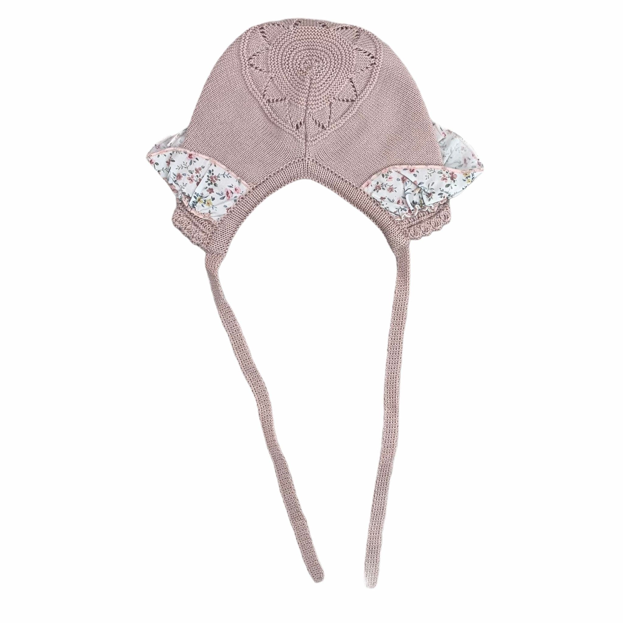 Cuffia In Filo Di Cotone Con Rouches Floreale Rosa Neonata GRANLEI 399 - GRANLEI - LuxuryKids
