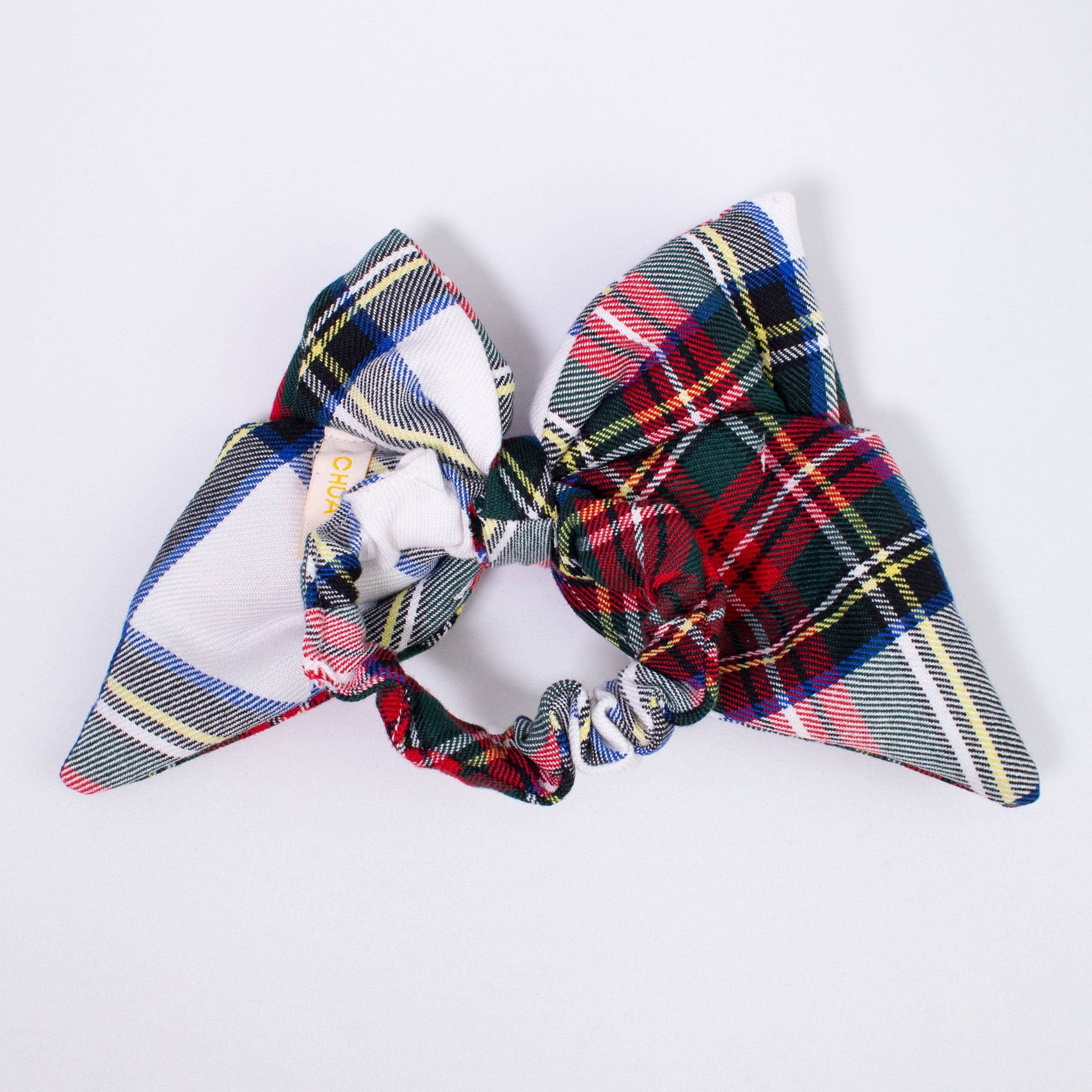 Elastico bambina in caldo cotone fantasia scozzese con fiocco grande della stessa fantasia