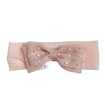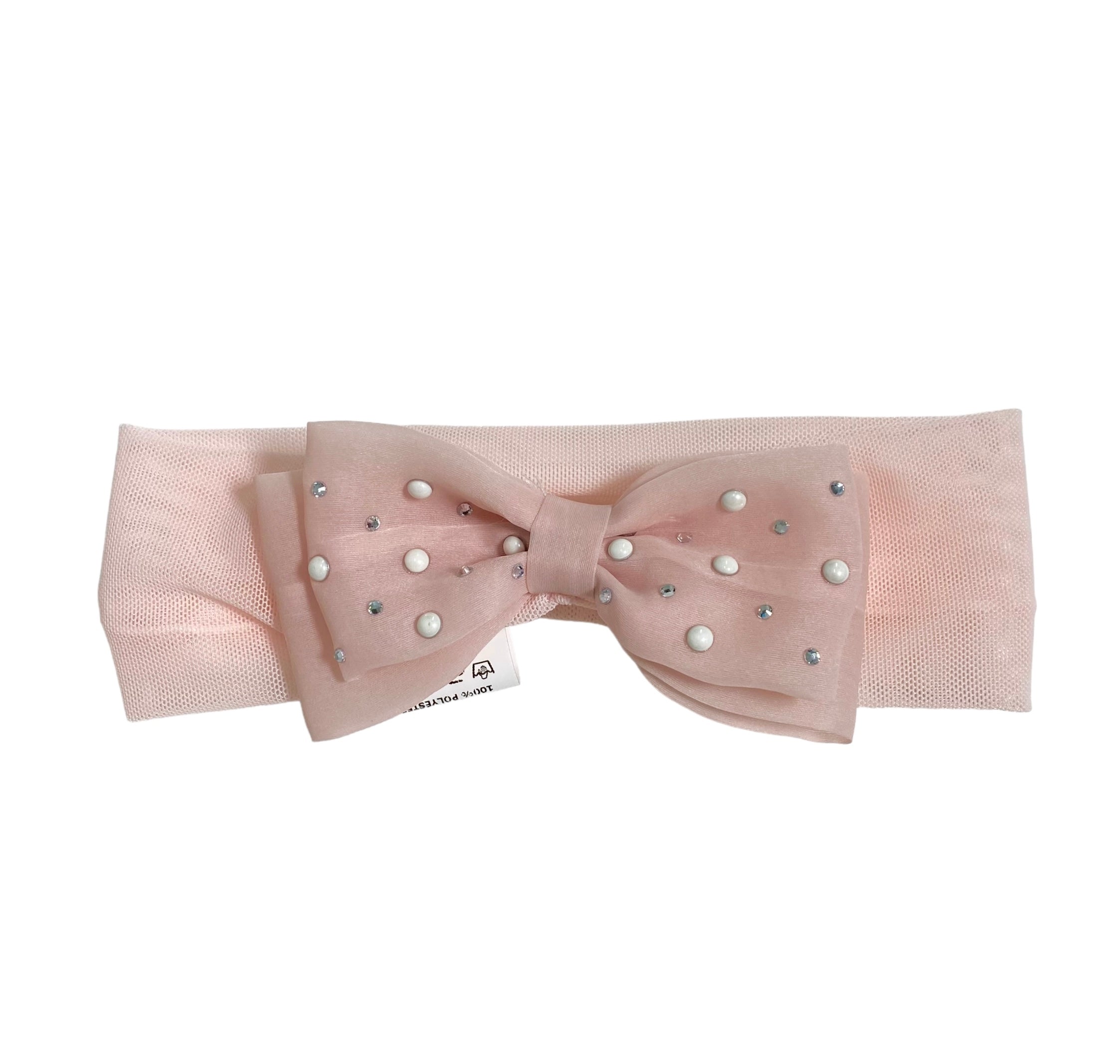 Questa delicata fascia in tulle elasticizzato è arricchita con un grazioso fiocco in organza con svarowsky e mezzeperle. Perfetta per completare il look della neonata, offrendo un tocco di eleganza e raffinatezza a ogni outfit. Ultimo dettaglio per un outfit impeccabile.
